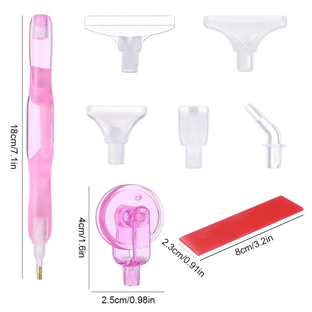 Diamond Painting Pen Kit with 5 Drill Pen Picking Heads and 1 Clay (Pink)