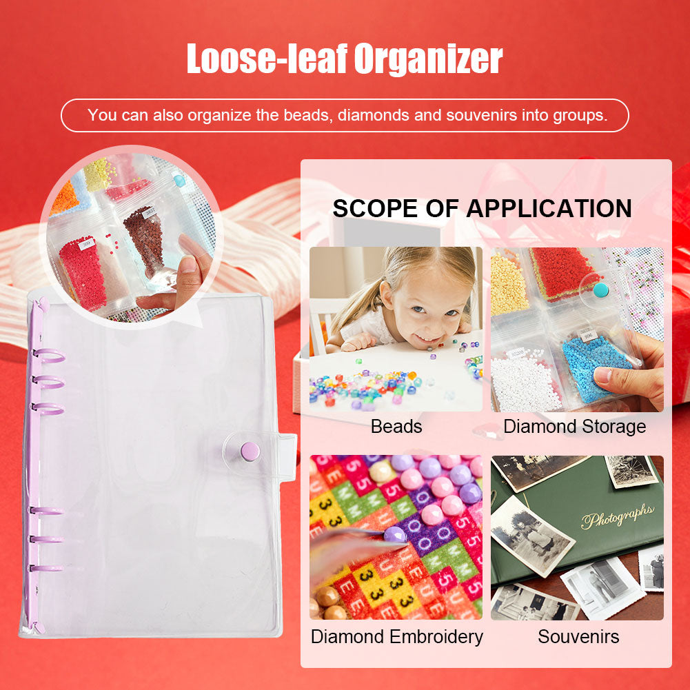 Diamond Painting Storage Book Beads Container A5 Album Binder with Pockets Self Sealing Plastic Bags Clear Loose Leaf Organizer