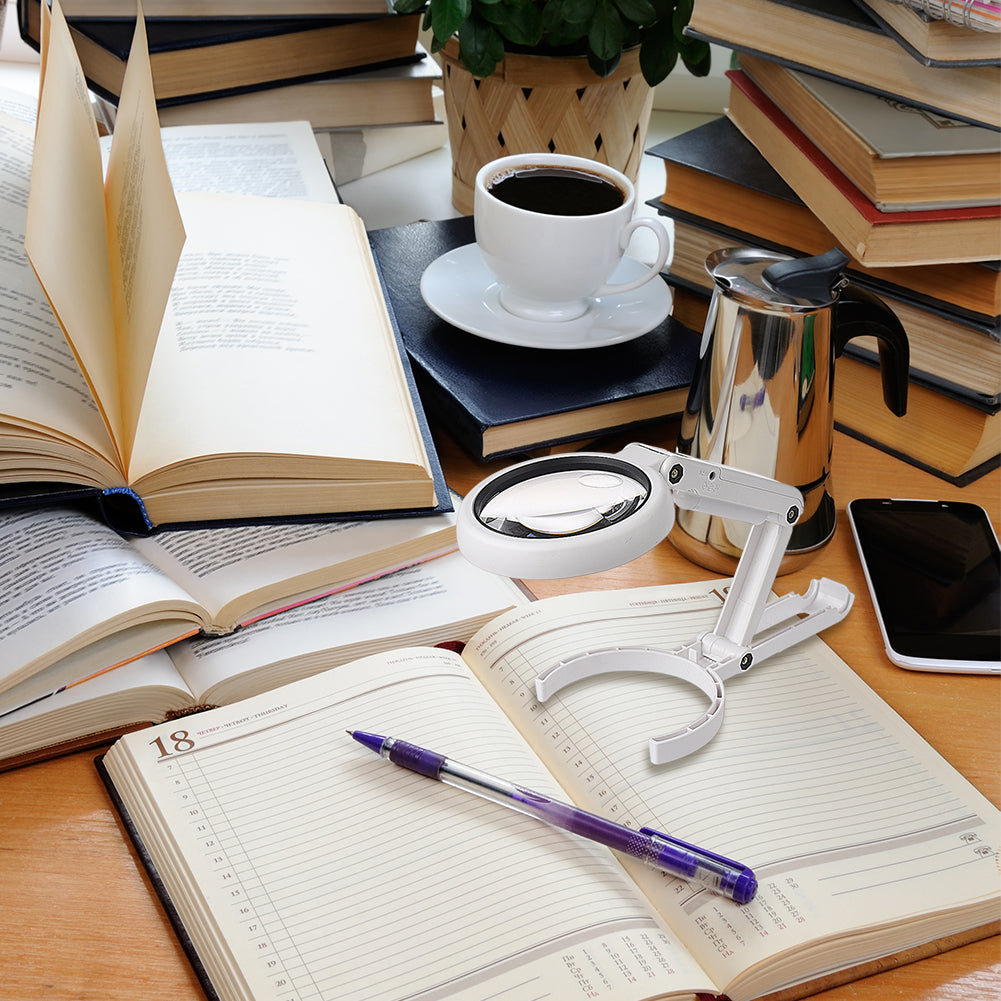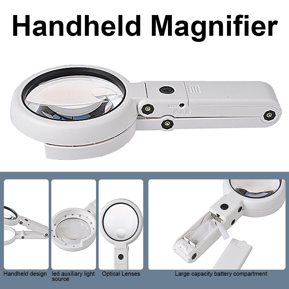 LED Folding Light Magnifier for Book Newspaper Reading Portable Handheld Foldable Loupe Desktop Magnifying Glass