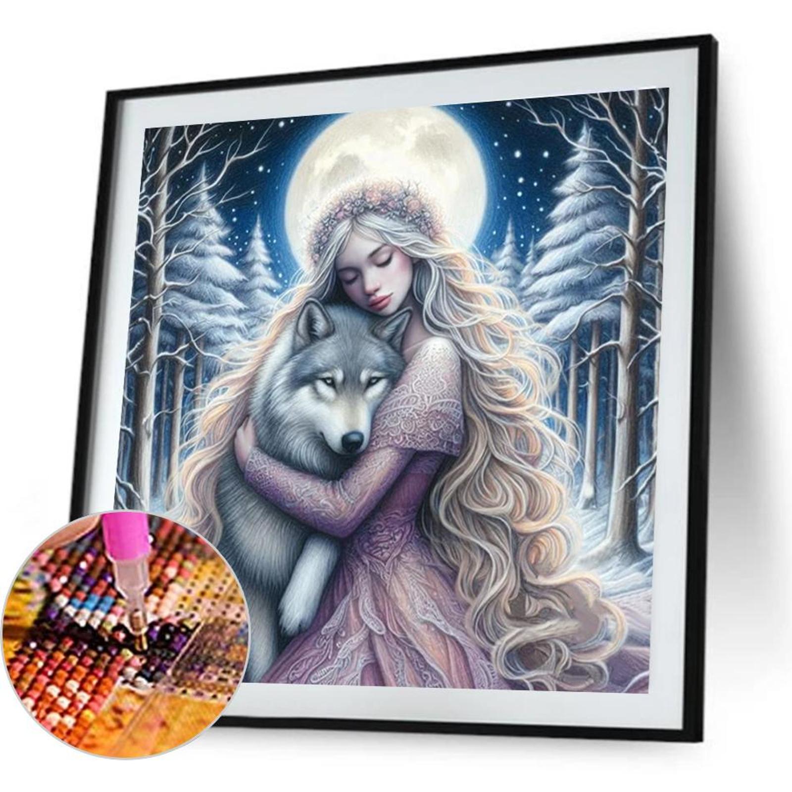 Purple-Haired Girl And The Wolf 40*40CM(Canvas) Full Round Drill Diamond Painting