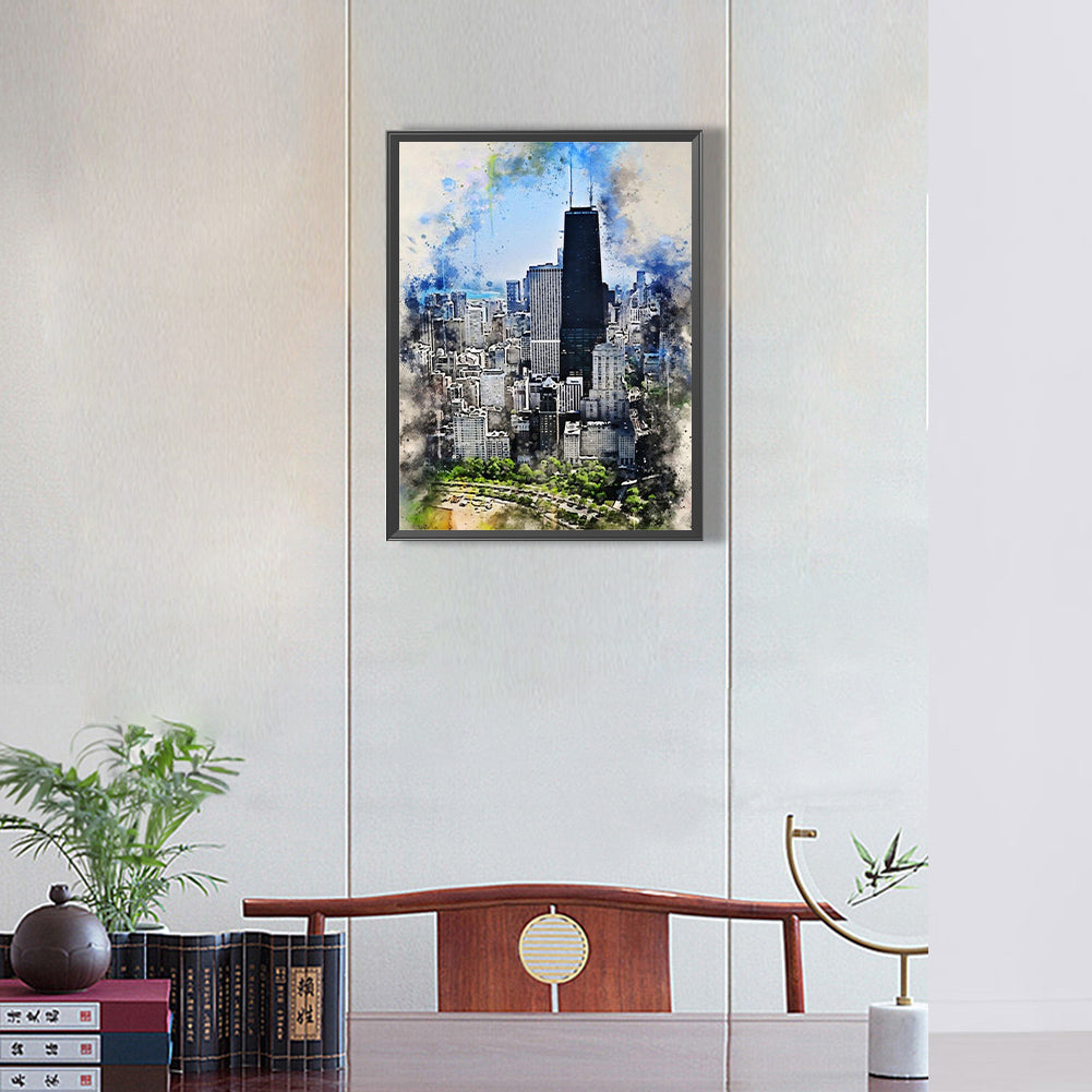Watercolor-Style Historical Sites 30*40CM(Canvas) Full Round Drill Diamond Painting