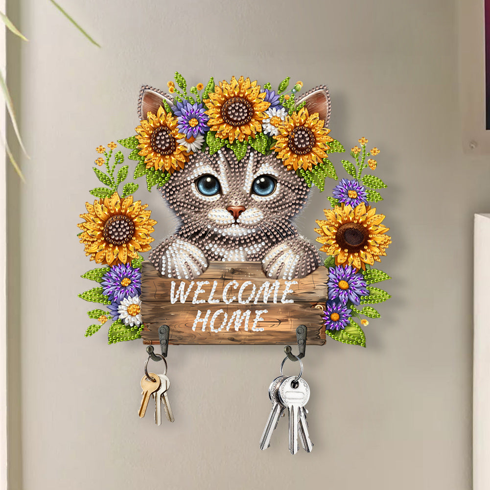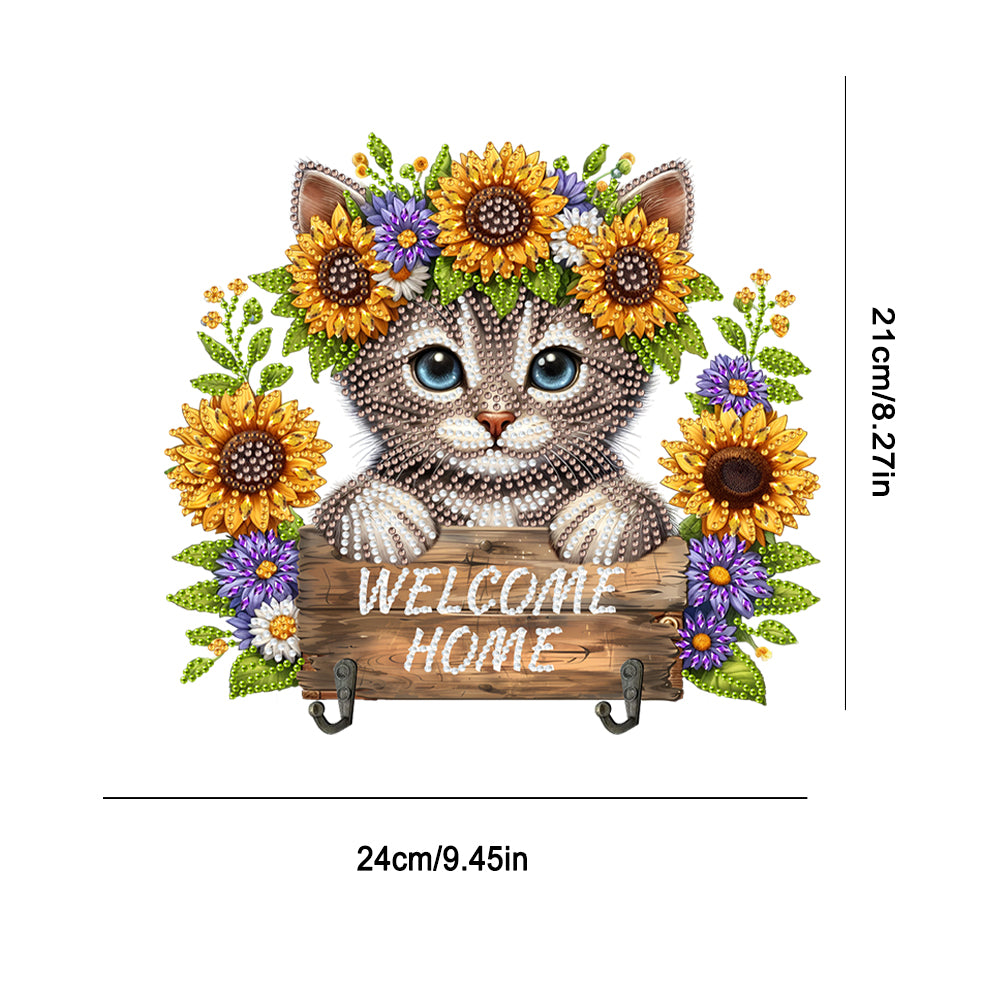 Cat Theme Wood DIY Diamond Painting Hooks Home Decor Craft Kit for Wall Decor