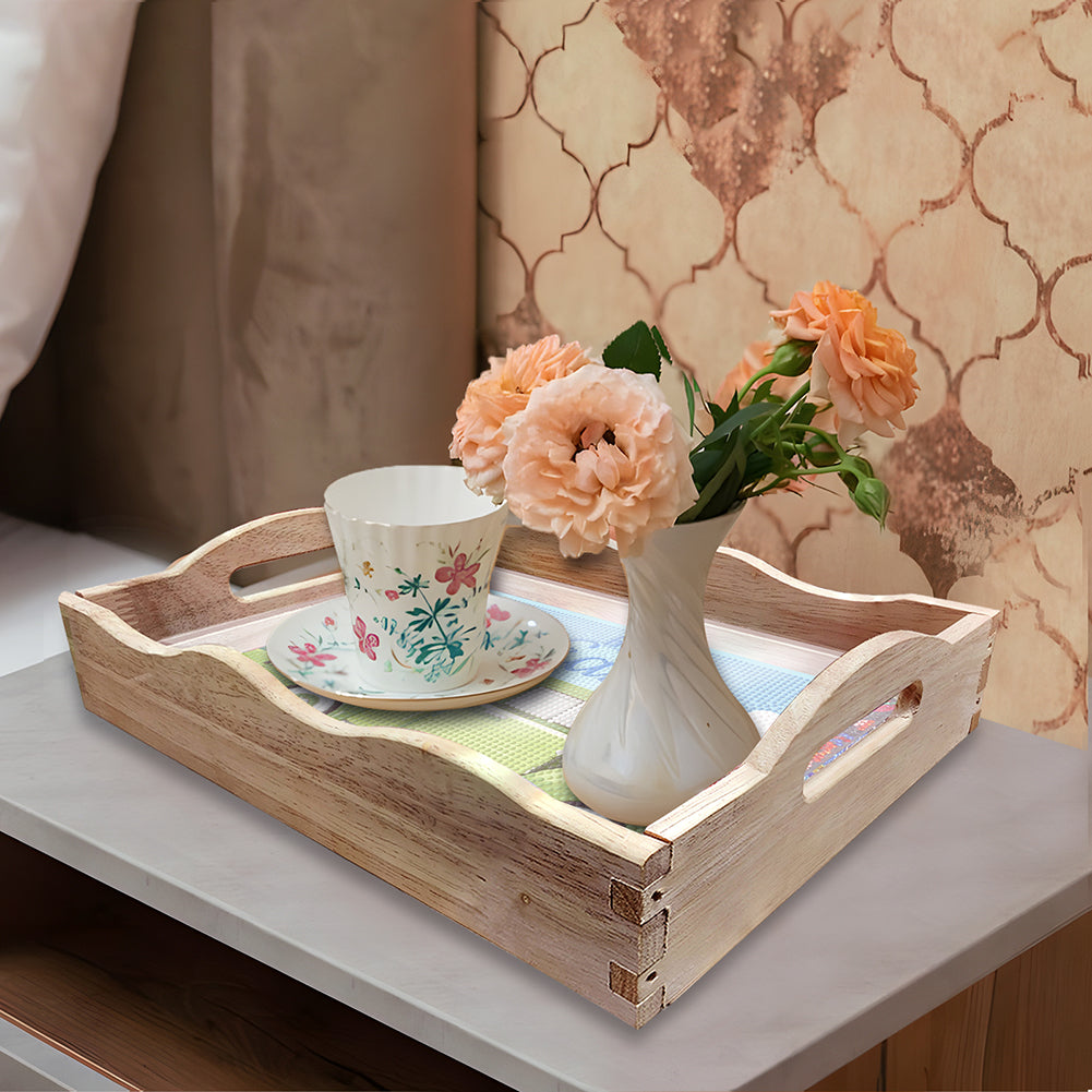 Diamond Painting Wooden Serving Tray with Handle Rectangular Wooden Tray Dinner Organizer Tray for Desktop/Coffee Table/Countertop Centerpiece