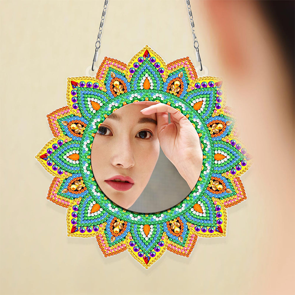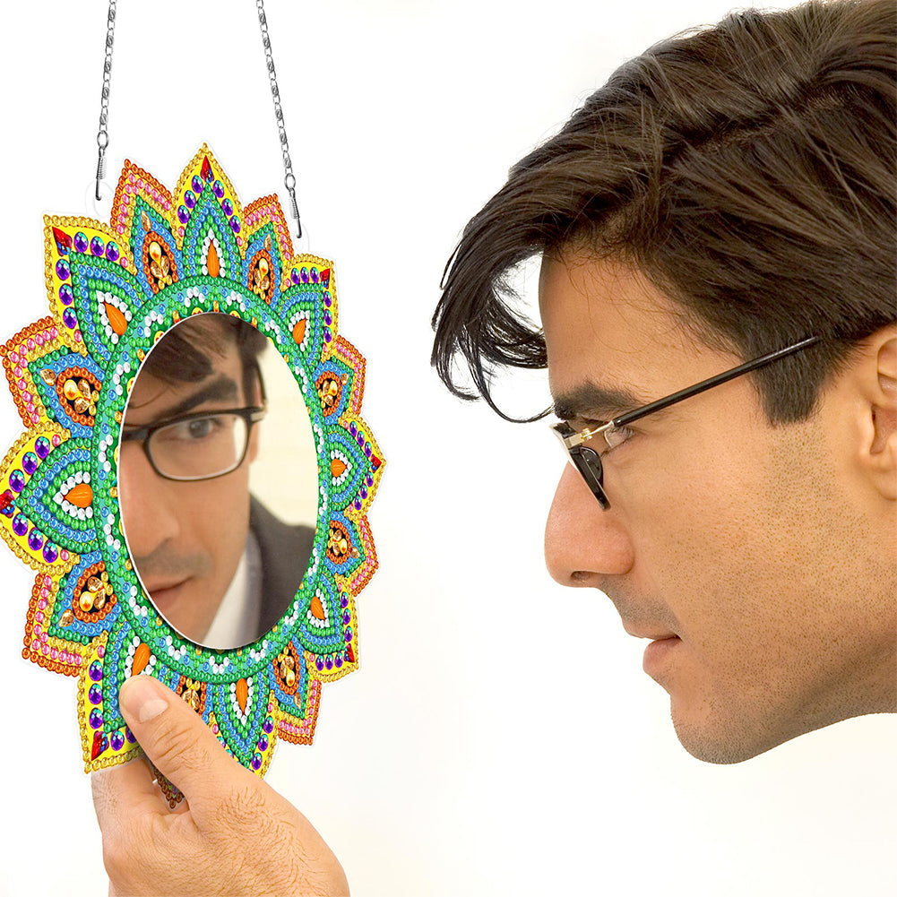 3.Practical:The mandala diamond painting mirror pattern design, intricate and fashionable,suitable for cosmetic table,study room, bedroom,Living room,Bathroom.HD mirror can be used for makeup, decoration, shooting, etc.