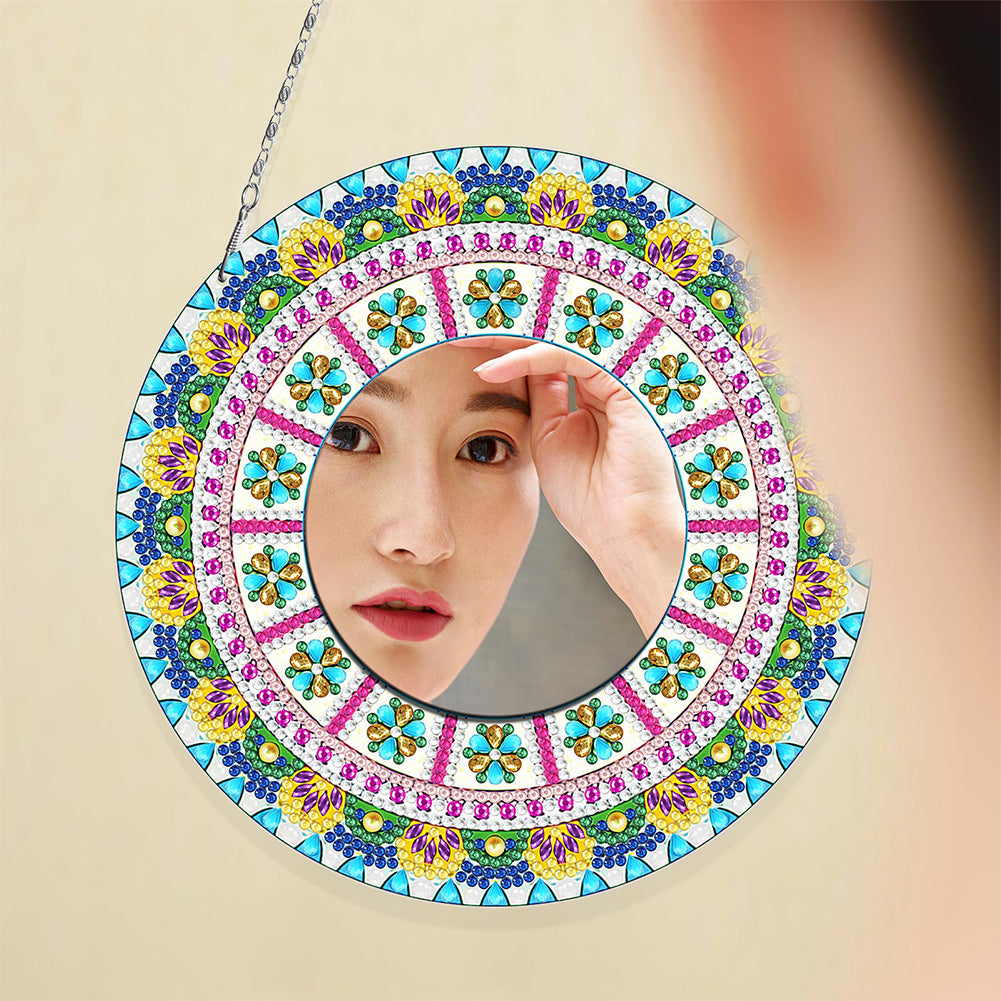 3.Practical:The mandala diamond painting mirror pattern design, intricate and fashionable,suitable for cosmetic table,study room, bedroom,Living room,Bathroom.HD mirror can be used for makeup, decoration, shooting, etc.