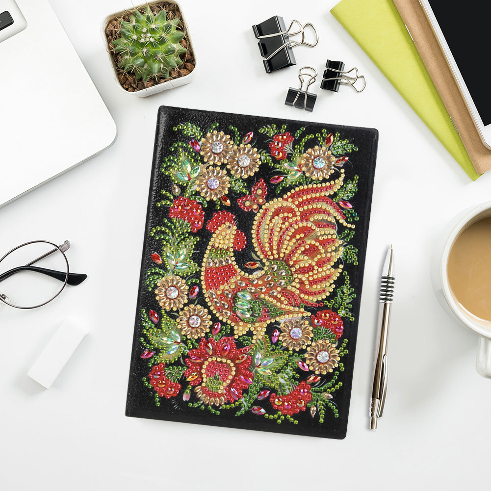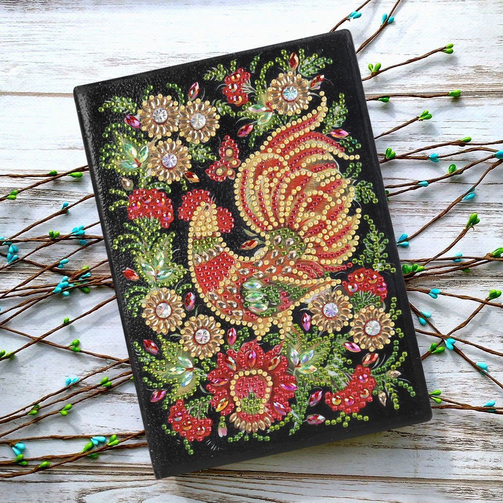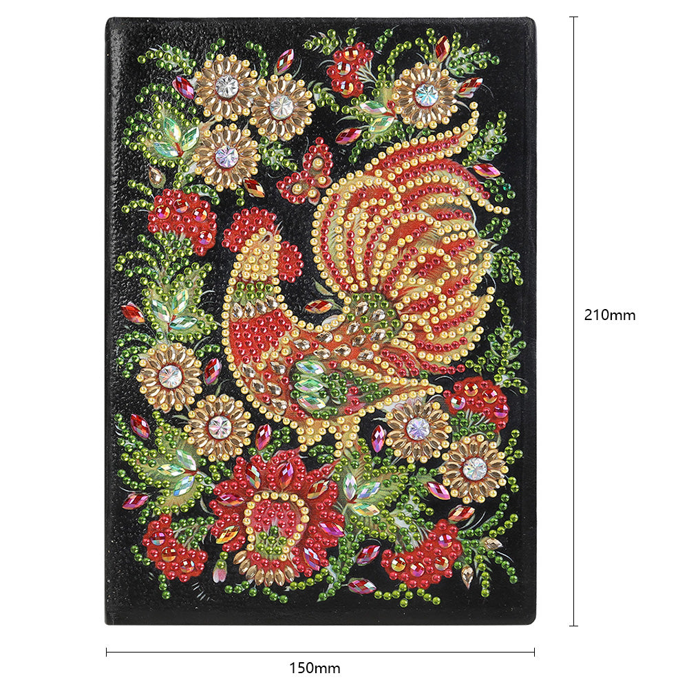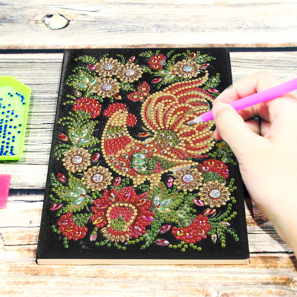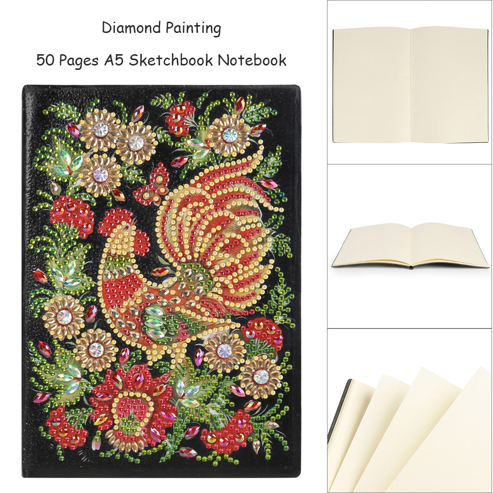 DIY Diamond Painting Sketchbook Blank No Line Resin Rhinestone Drawing Notebook 50 Pages Rooster Pattern Handmade for Kids Adult