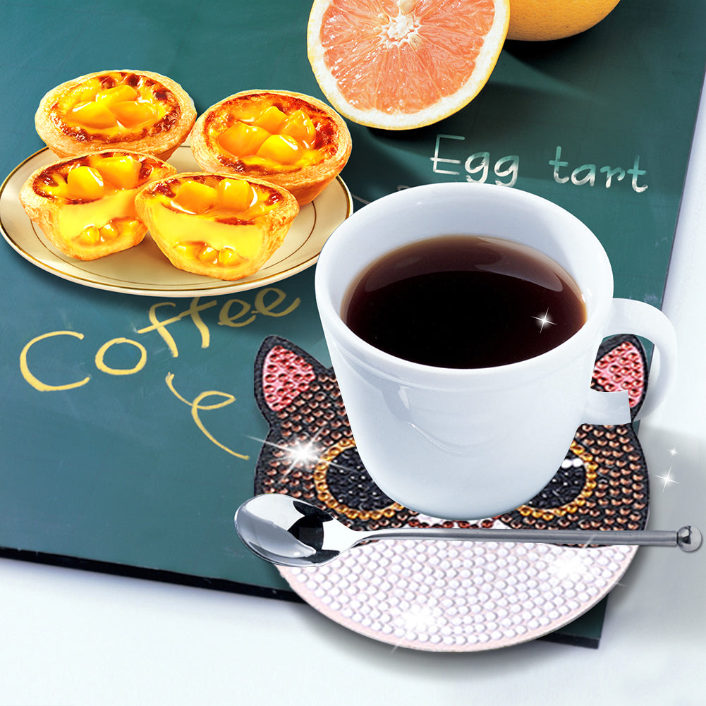 DIY Diamonds Painting Coaster Woody Cat Cartoon Head with Rack Decor (AA1144)