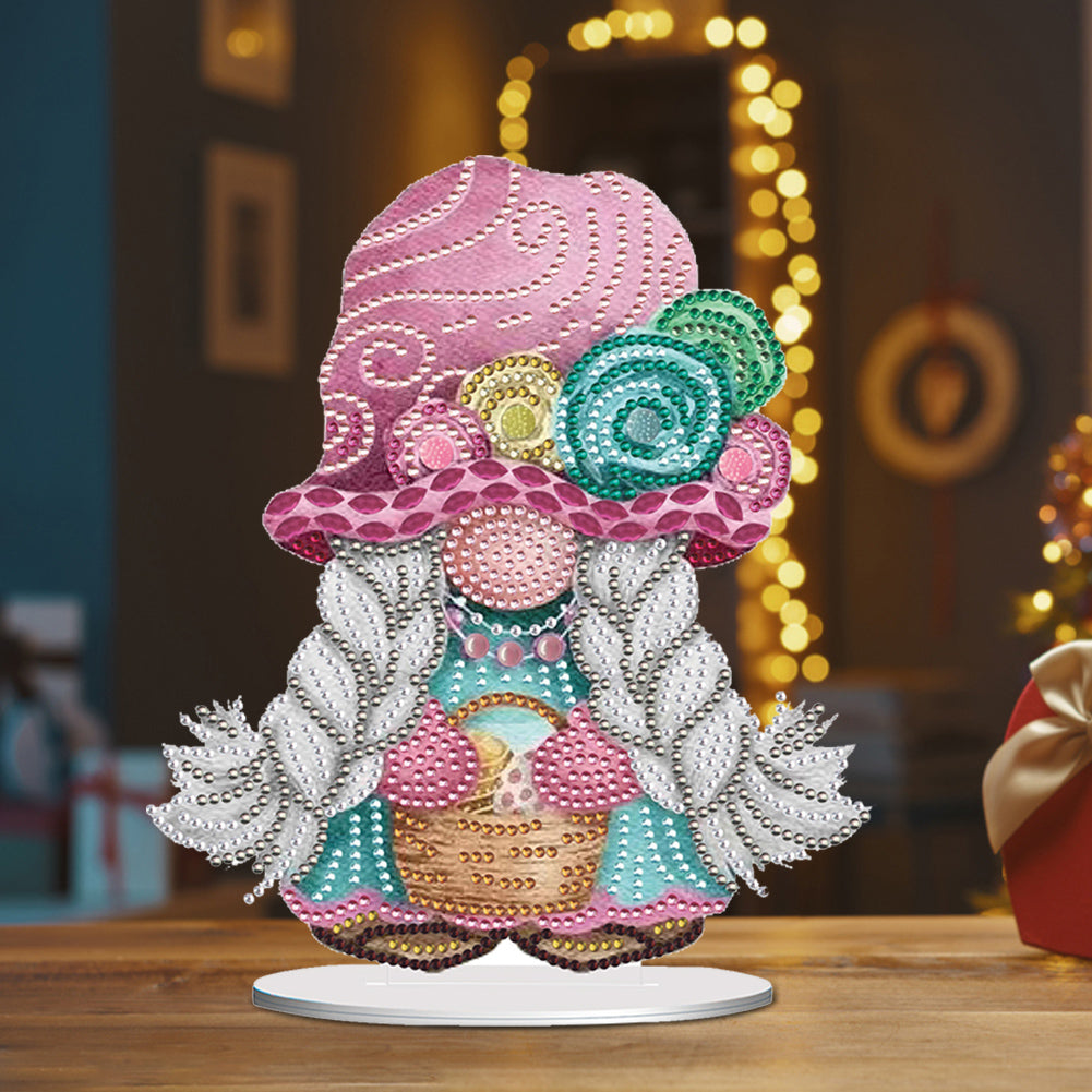 Easter Gnome Diamond Painting Tabletop Ornaments Kit Colorful Special Shaped 5D DIY Diamond Art Tabletop Decorations Single-Side Table Top Diamond Painting Ornament Kit for Home Office Desktop Decor