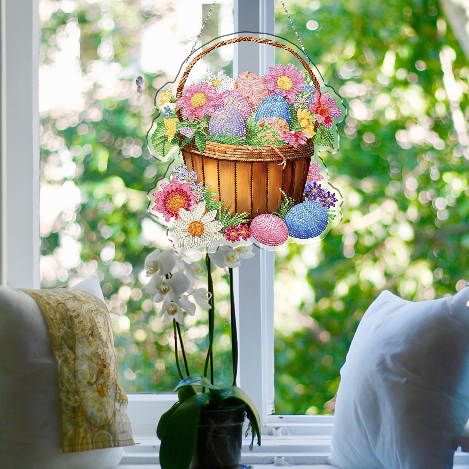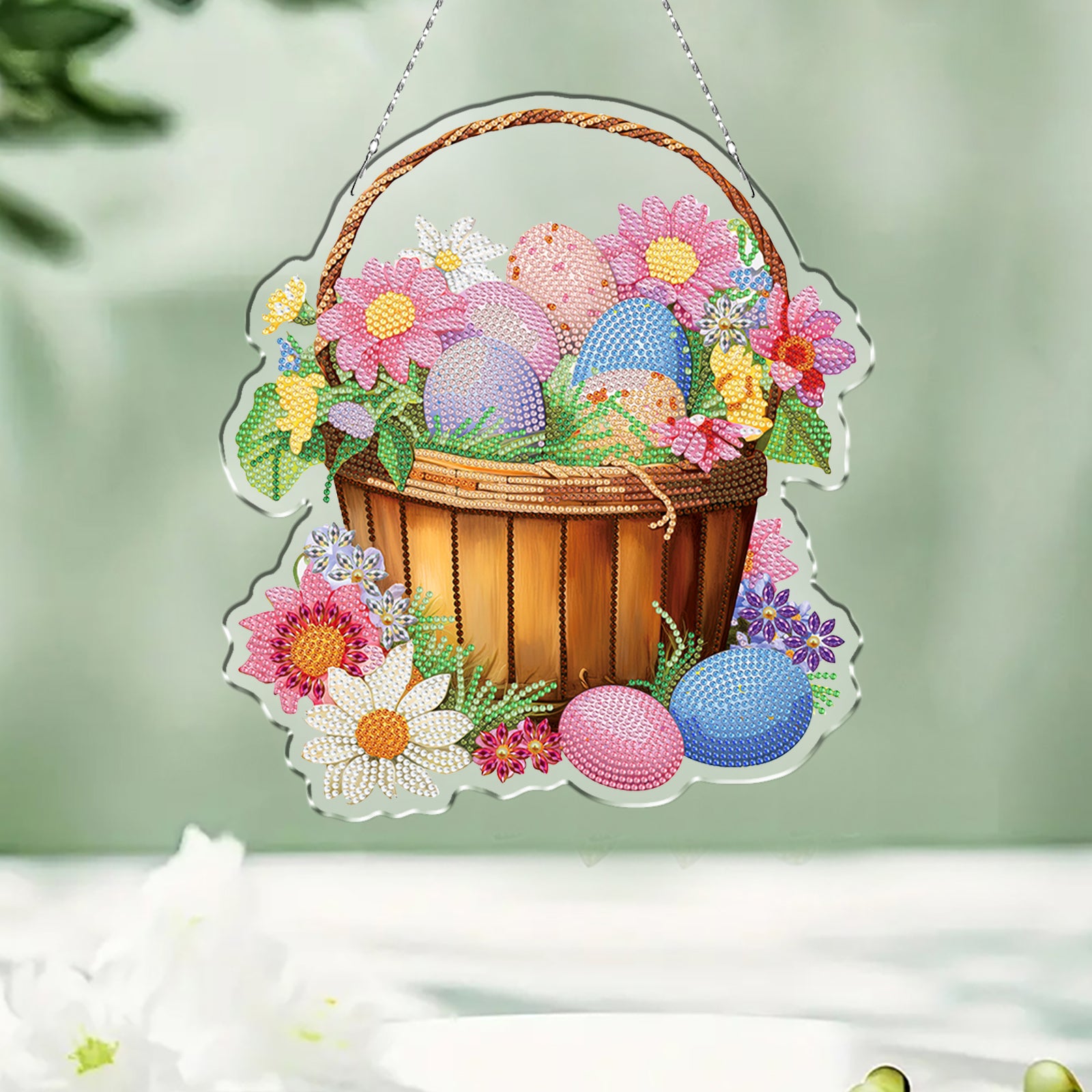 Easter Acrylic Single-Sided Diamond Painting Hanging Pendant Cute 5D DIY Diamond Painting Dots Pendant Colorful Rhinestone Diamond Art Window Pendants Handmade for Garden Window Decor