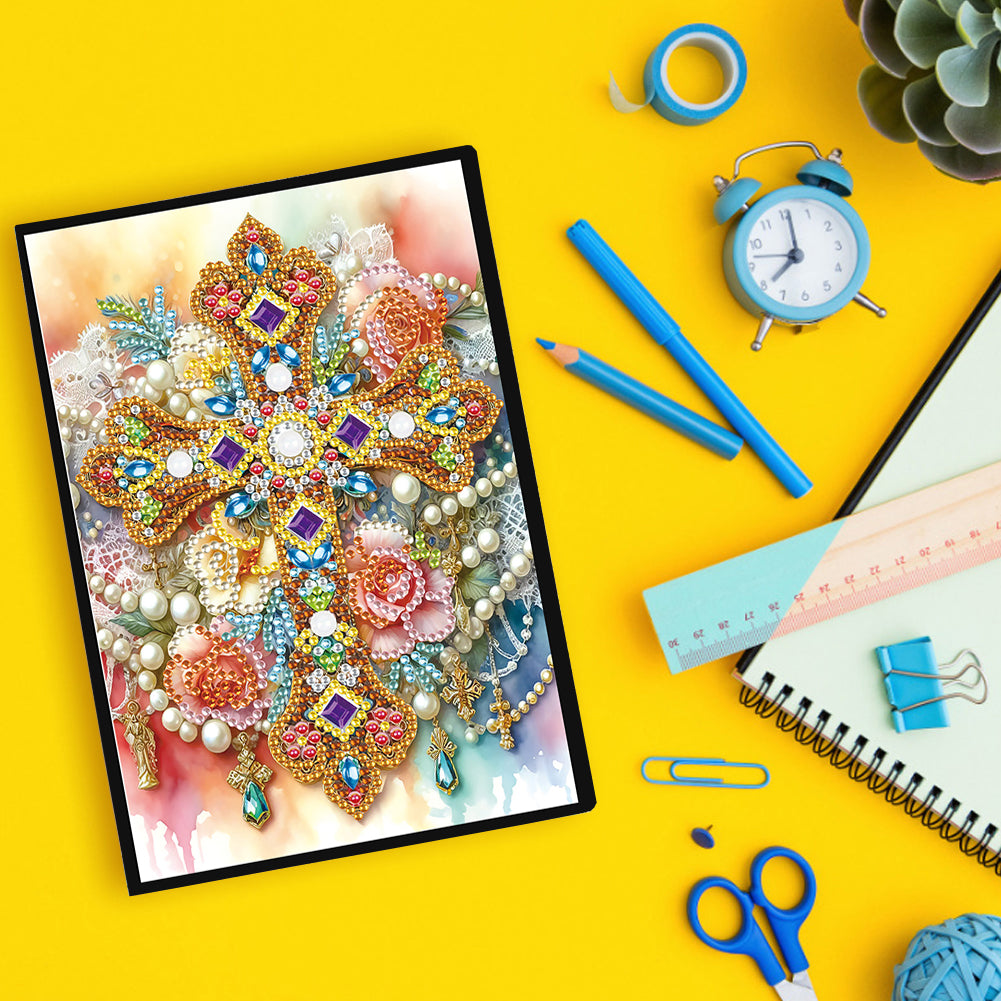 Flower Cross 5D Diamond Painting Notebook Diamond Art Diary Book (Cross A)