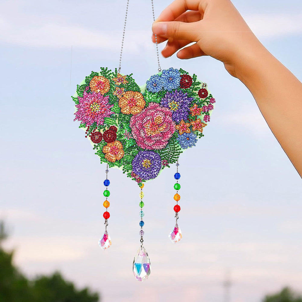 Flower Wind Chimes Diamond Painting Hanging Sign Handmade Diamond Painting Hanging Decor Butterfly Diamond Drawing Hanging Ornament Heart for Garden Window Decor