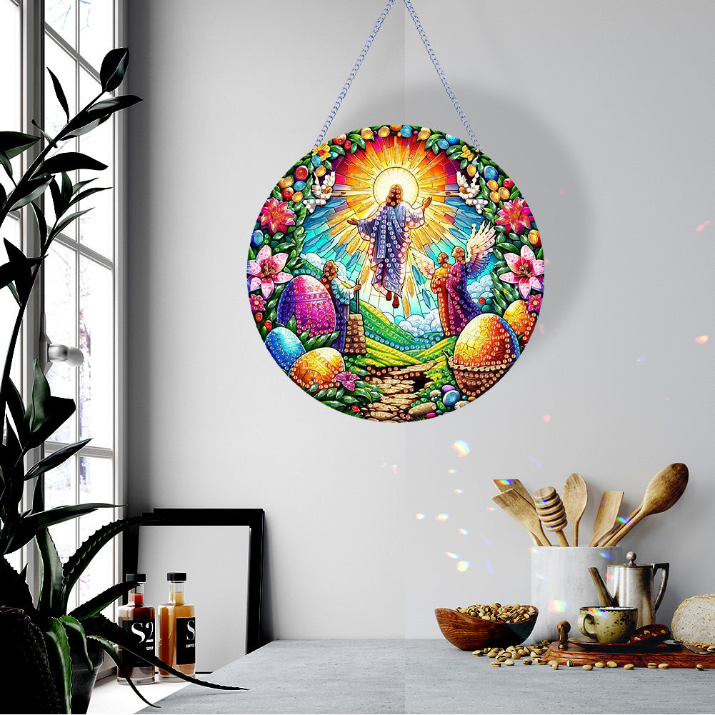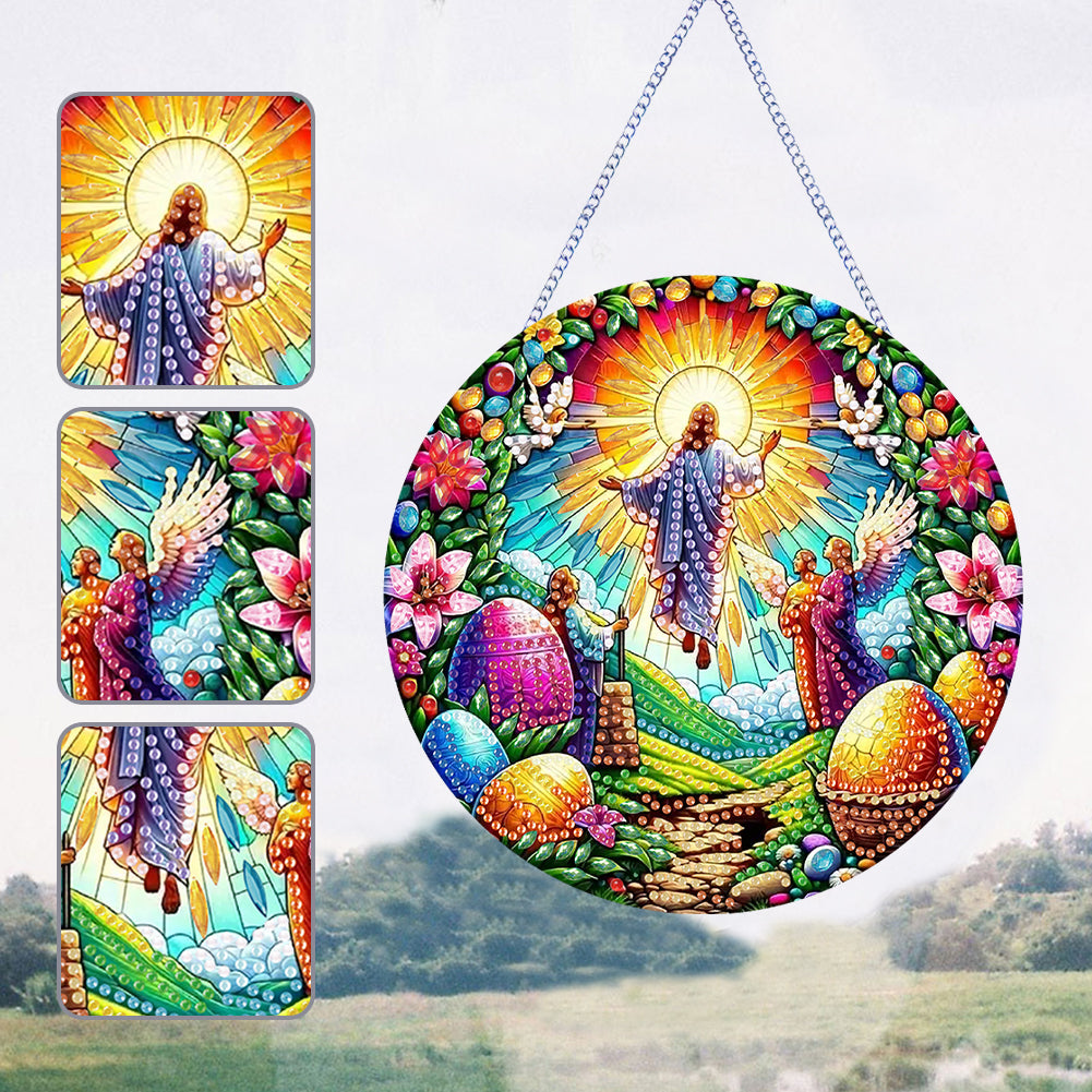 Jesus Single-Side Diamond Art Hanging Pendant for Home Wall Window Office Decor
