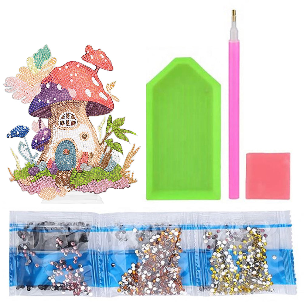 Round Crystal Painting Desktop Diamond Painting Table Decor (Mushroom House 1)