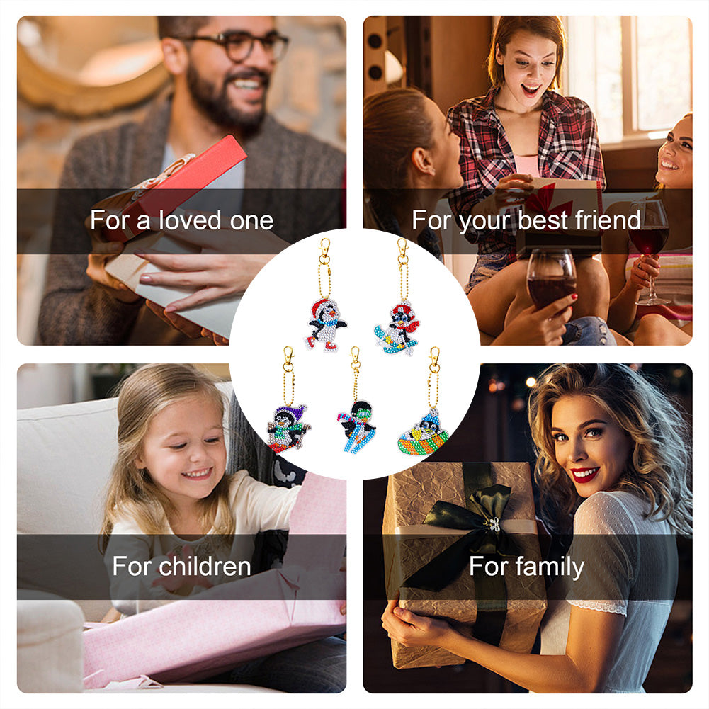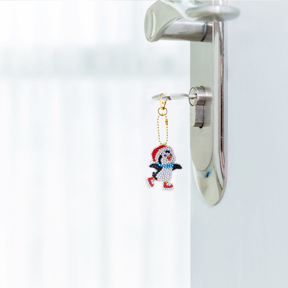 5pcs Snow Sports/Rabbit Diamond Painting Keychain DIY Crystal Drill Cartoon Key Ring Pendant Women Bag Accessories