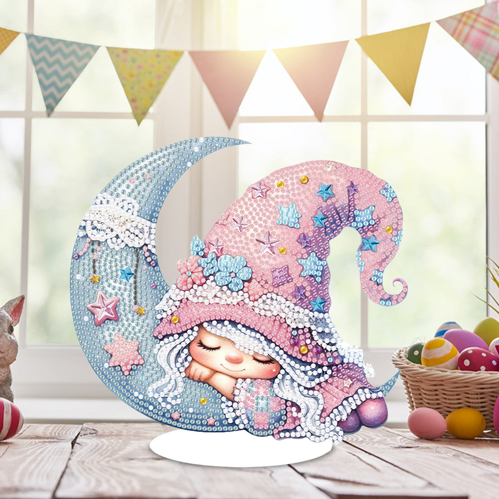 Special Shaped 5D Girl With Moon Diamond Art Tabletop Decor Bedroom Home Decor