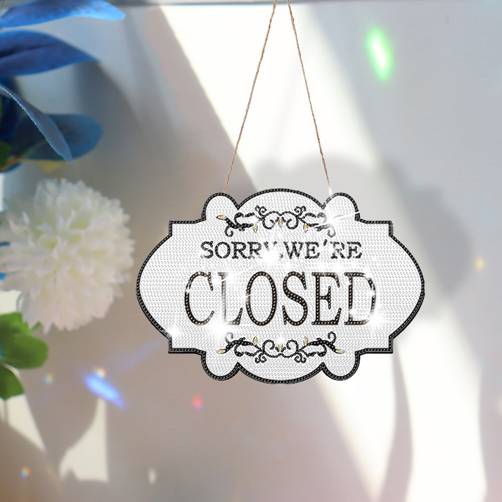 Wooden Diamond Painting Hanging Pendant Closed Shop Sign 5D DIY Diamond Painting Dots Pendant for Garden Window Decor