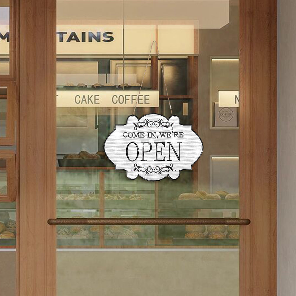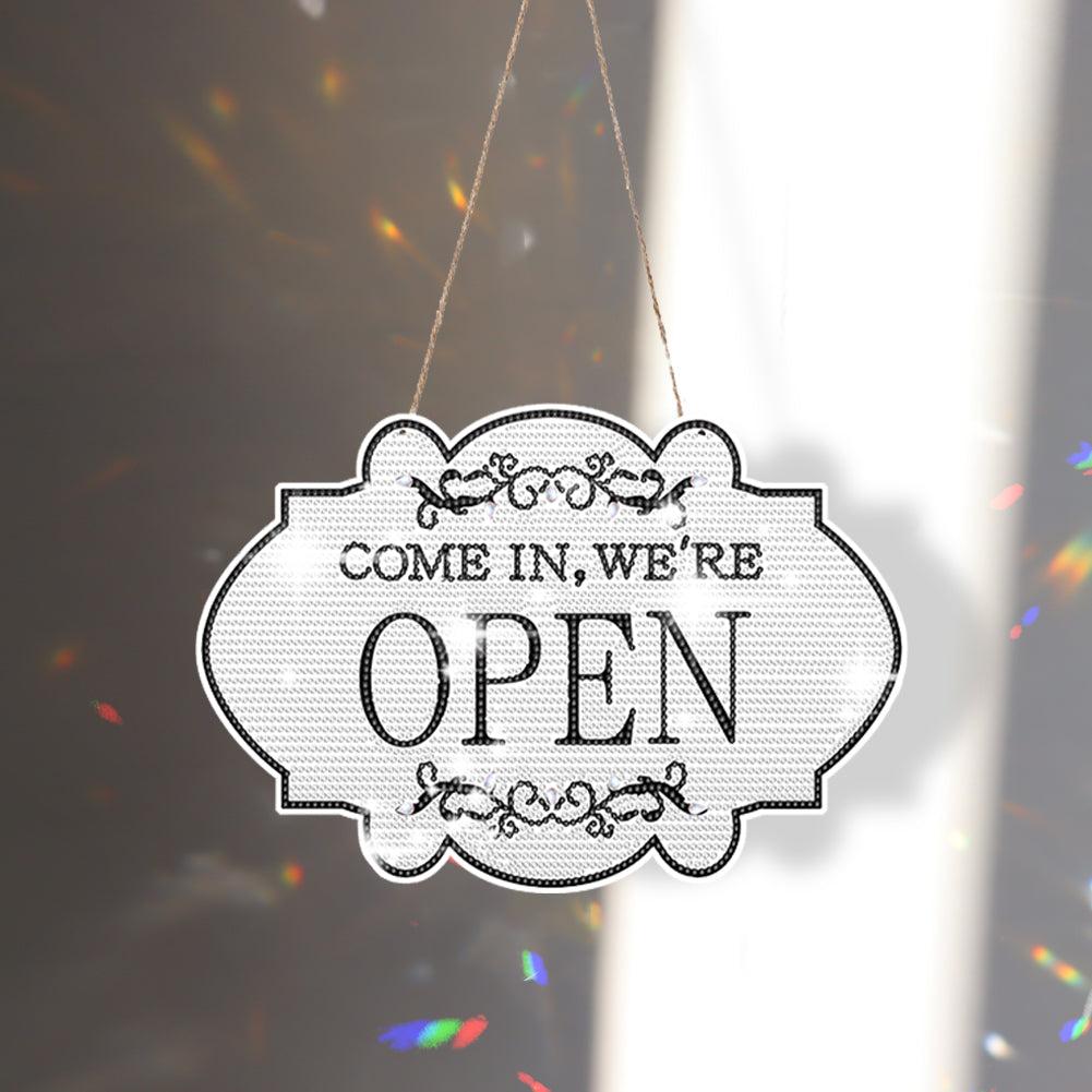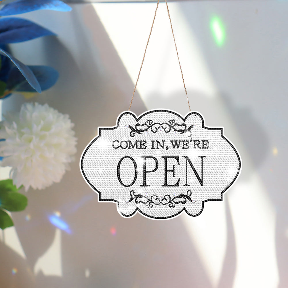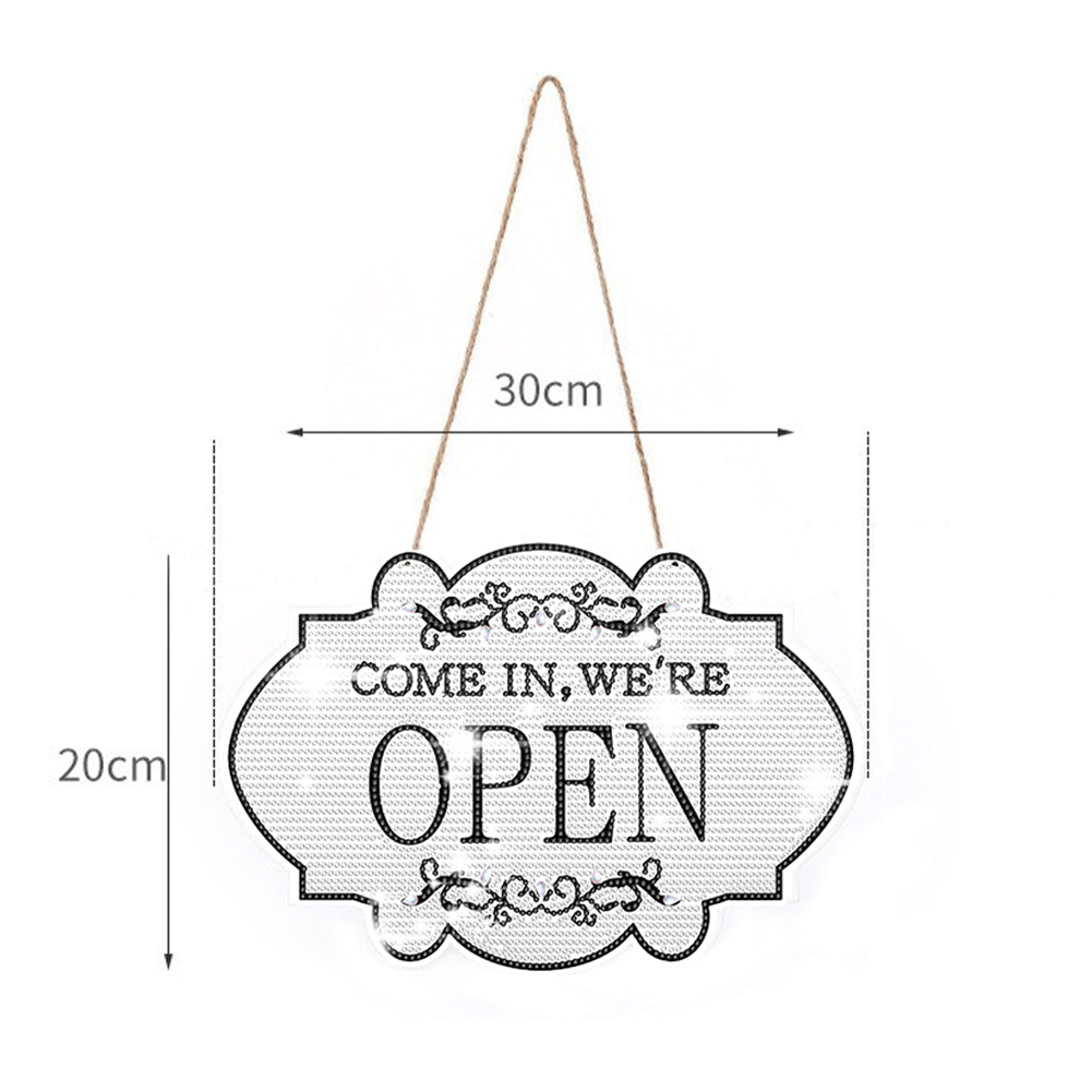 Wooden Diamond Painting Hanging Pendant Open Shop Sign 5D DIY Diamond Painting Dots Pendant for Garden Window Decor