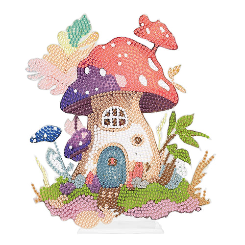 Round Crystal Painting Desktop Diamond Painting Table Decor (Mushroom House 1)