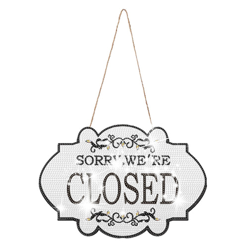 Wooden Shop Sign Diamond Painting Hanging Pendant for Home Decor (Closed White)