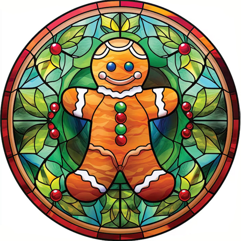 • Load image into Gallery viewer, Huancan - Glass Painting - Christmas Gingerbread Man - 20*20CM 18CT 2 Stamped Cross Stitch