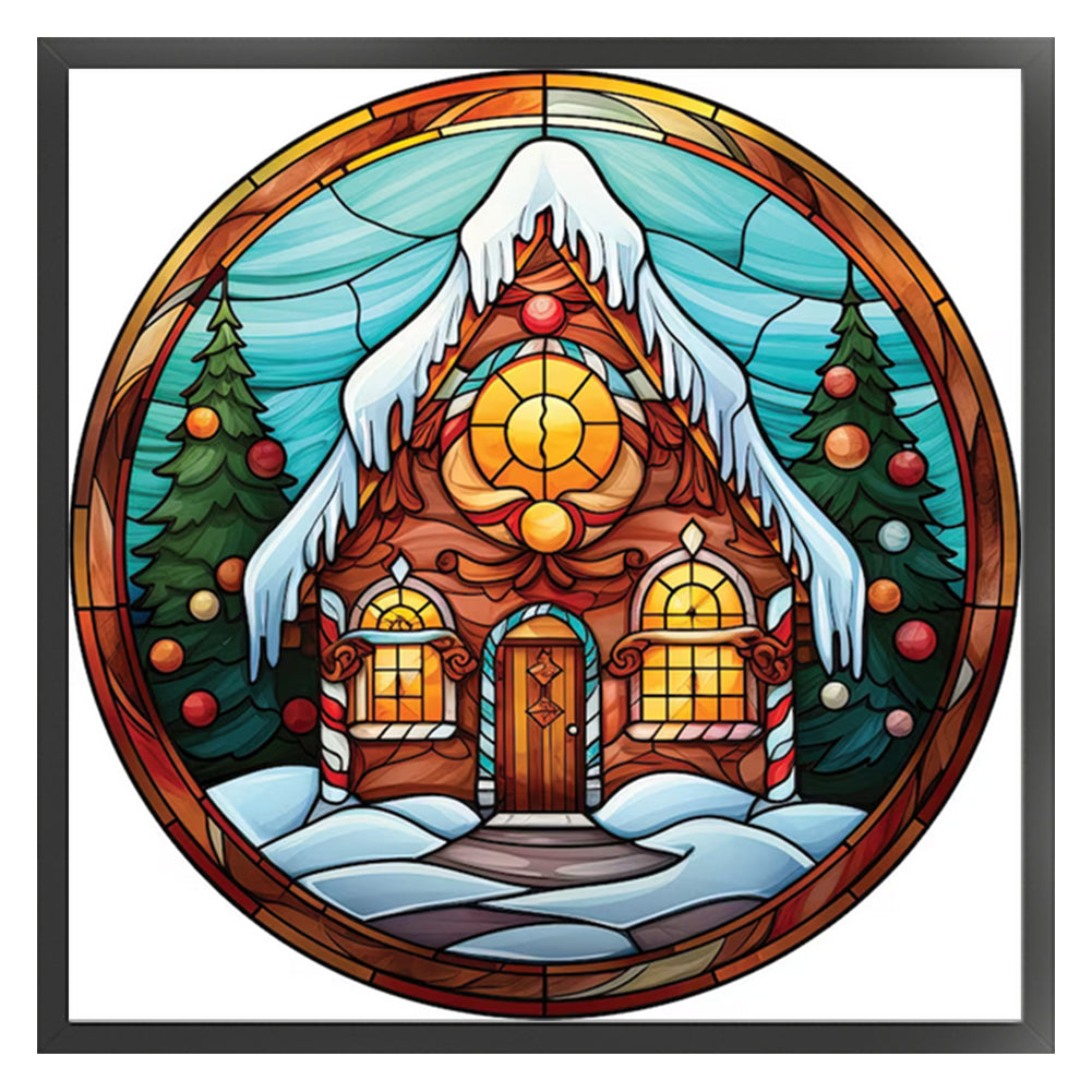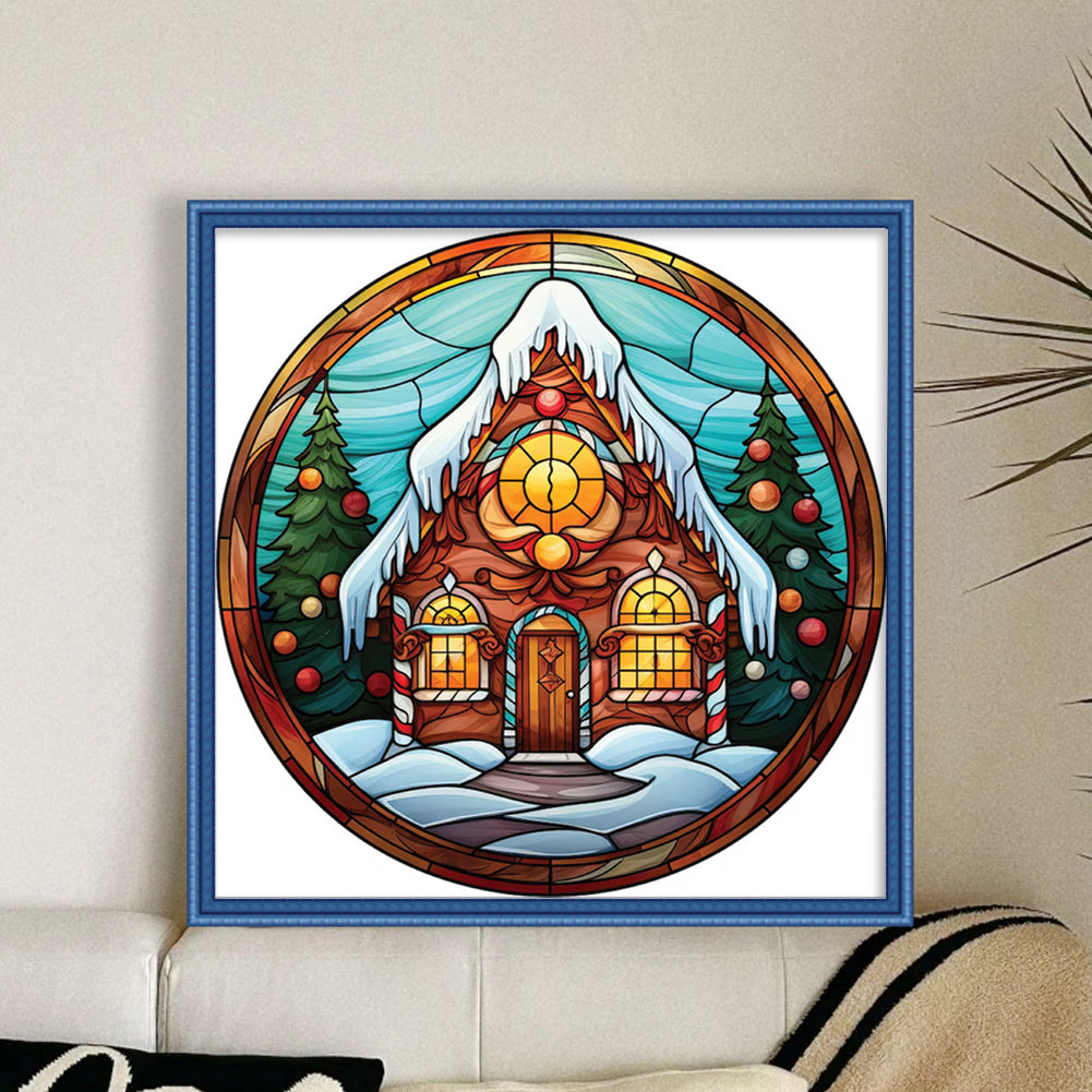 Huancan - Glass Painting - Christmas House - 20*20CM 18CT 2 Stamped Cross Stitch