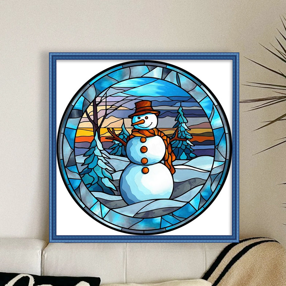 Huancan - Glass Painting - Snowman - 40*40CM 11CT 3 Stamped Cross Stitch