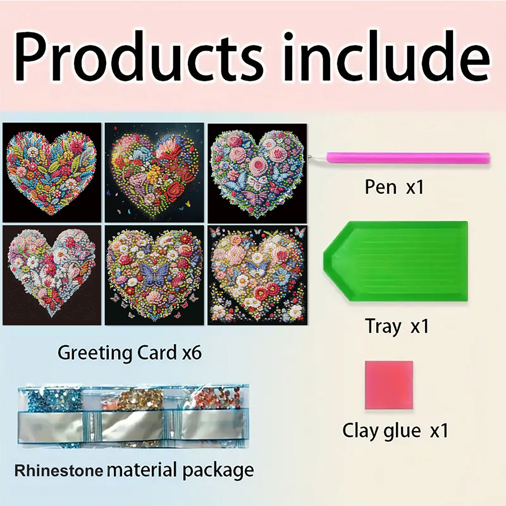 12PCS DIY Heart Flower Diamond Art Greeting Cards Diamond Art Handmade Cards