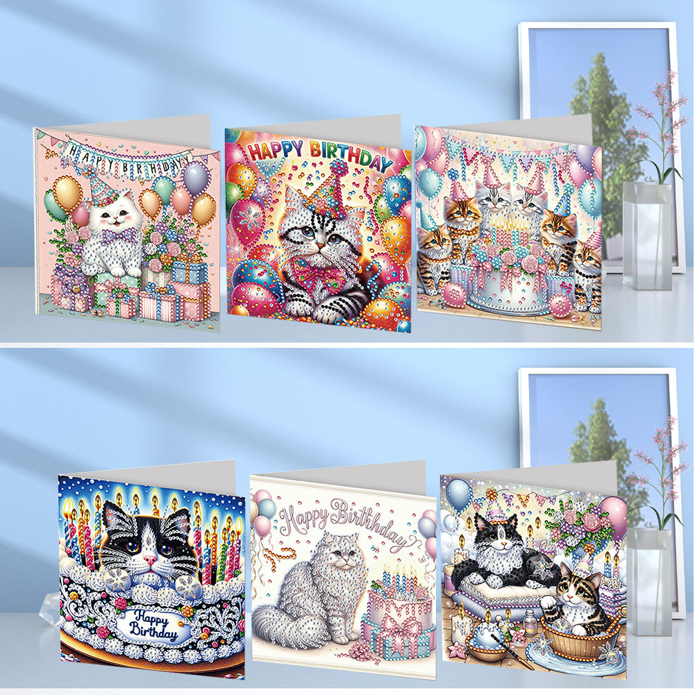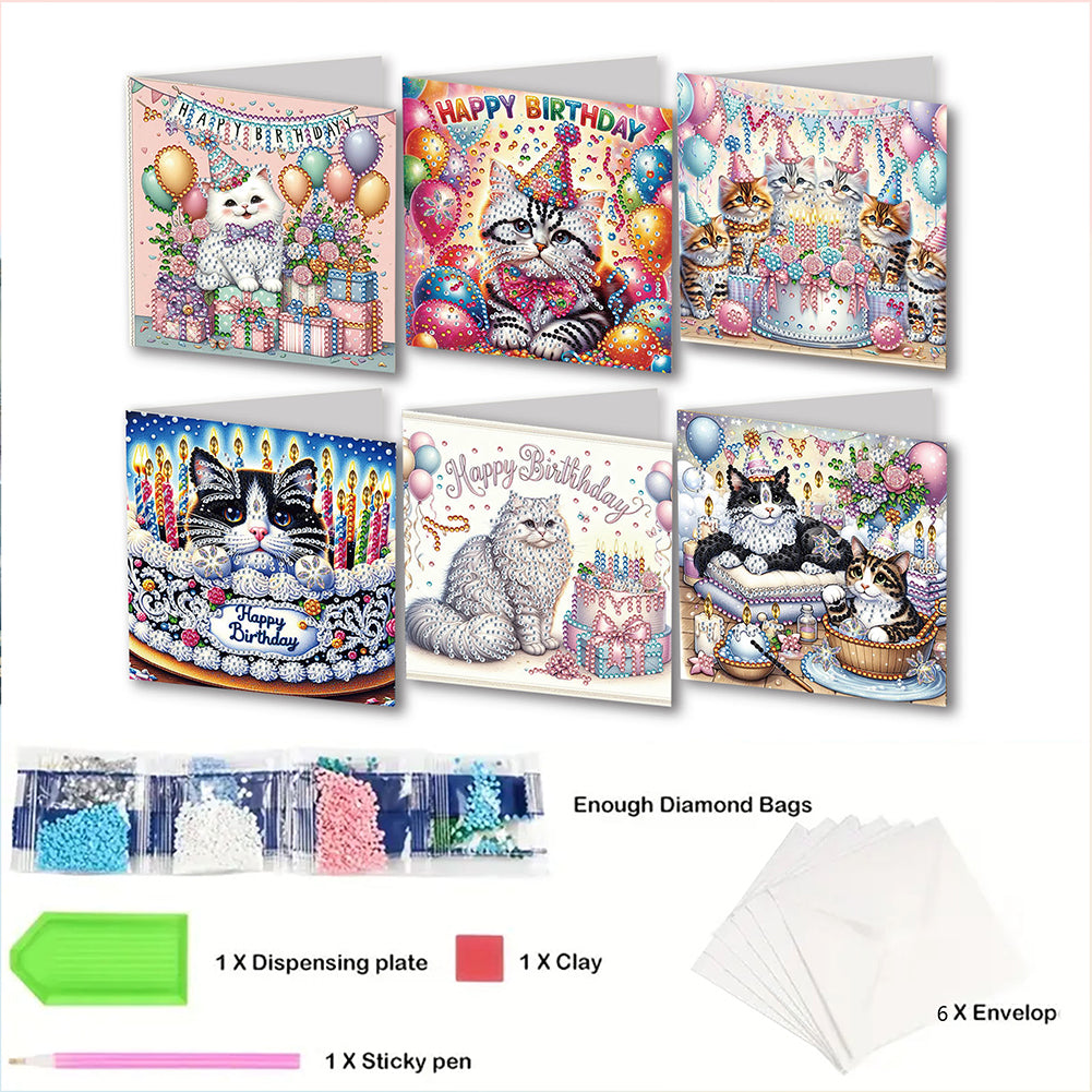 6Pcs Birthday DIY Diamond Painting Card Rhinestone Painting Card Kit Diamond Painting Greeting Card for Holiday Party Favors