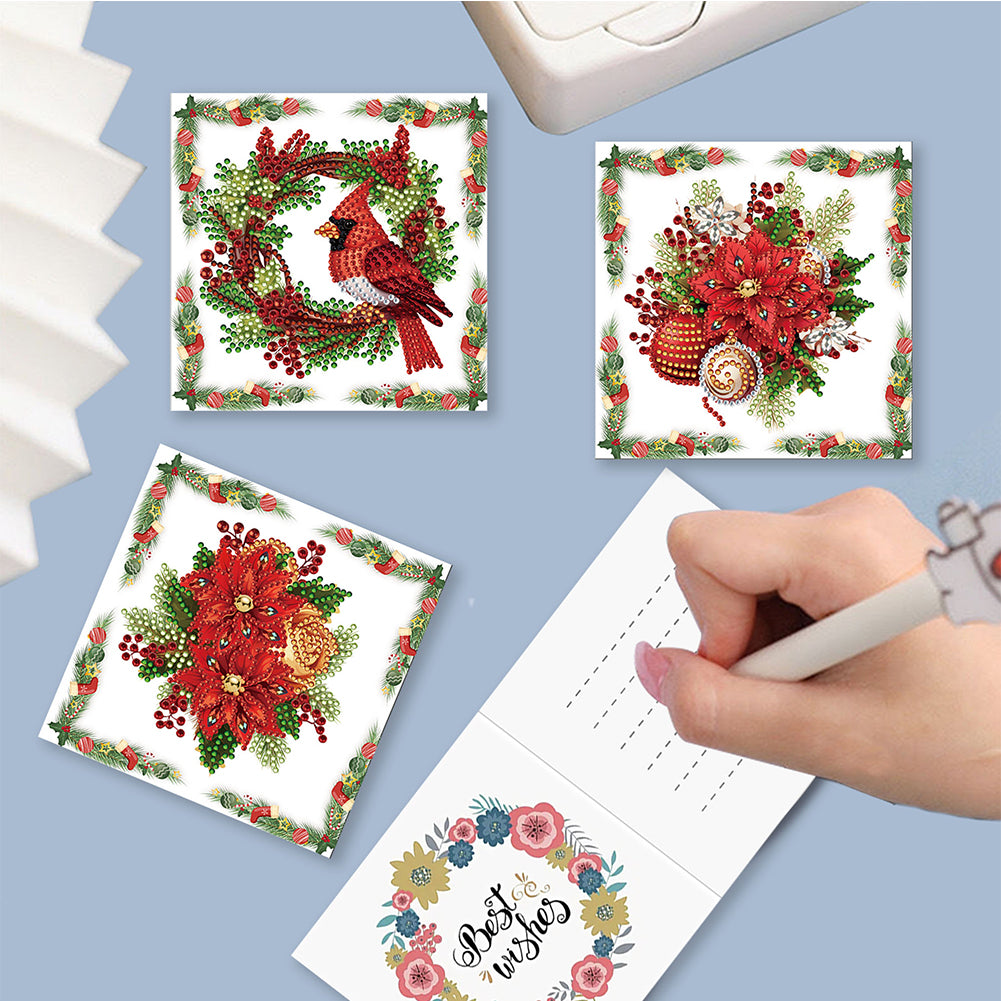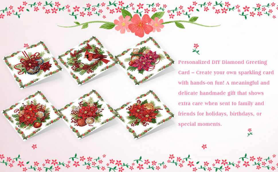 Christmas 6PCS DIY Red Flower Diamond Art Greeting Cards Congratulations Cards & Gifts
