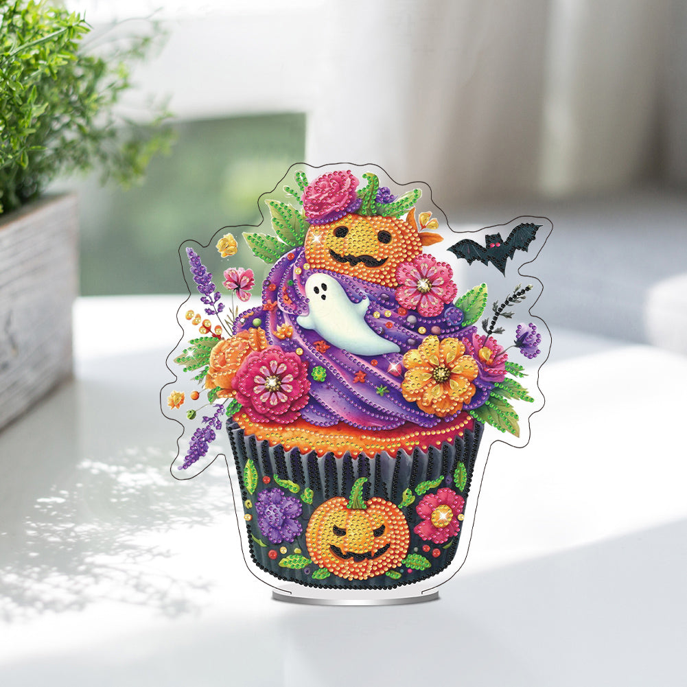 Acrylic Special Shaped Halloween Cake Diamond Painting Desktop Ornaments Kit 5D DIY Diamond Art Tabletop Decorations for Bedroom