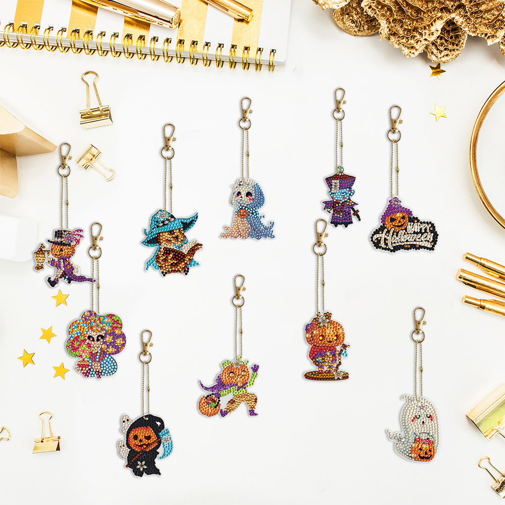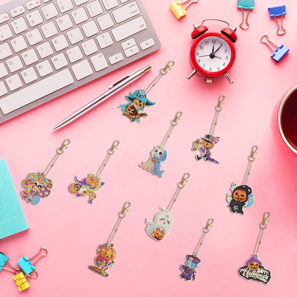 10PCS Diamond Painting Keychains Special Shape Double Sided Diamond Art Keychains Pendant Cute Bunny Rhinestone Painting Pendant Ornament Cute Little Ghost for Adults Kids Purse Backpack Handbag Decor