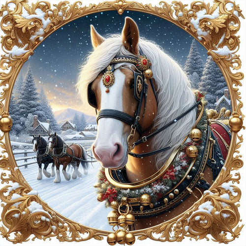 Christmas Horse 40*40CM(Canvas) Full Round Drill Diamond Painting