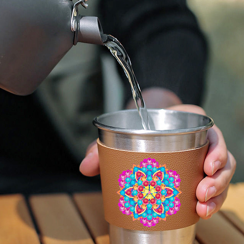 DIY Diamond Painting Cup Sleeve with Mandala 6pcs Rhinestone Tumbler Sleeve Leather Flower Diamond Cross for Adults and Children