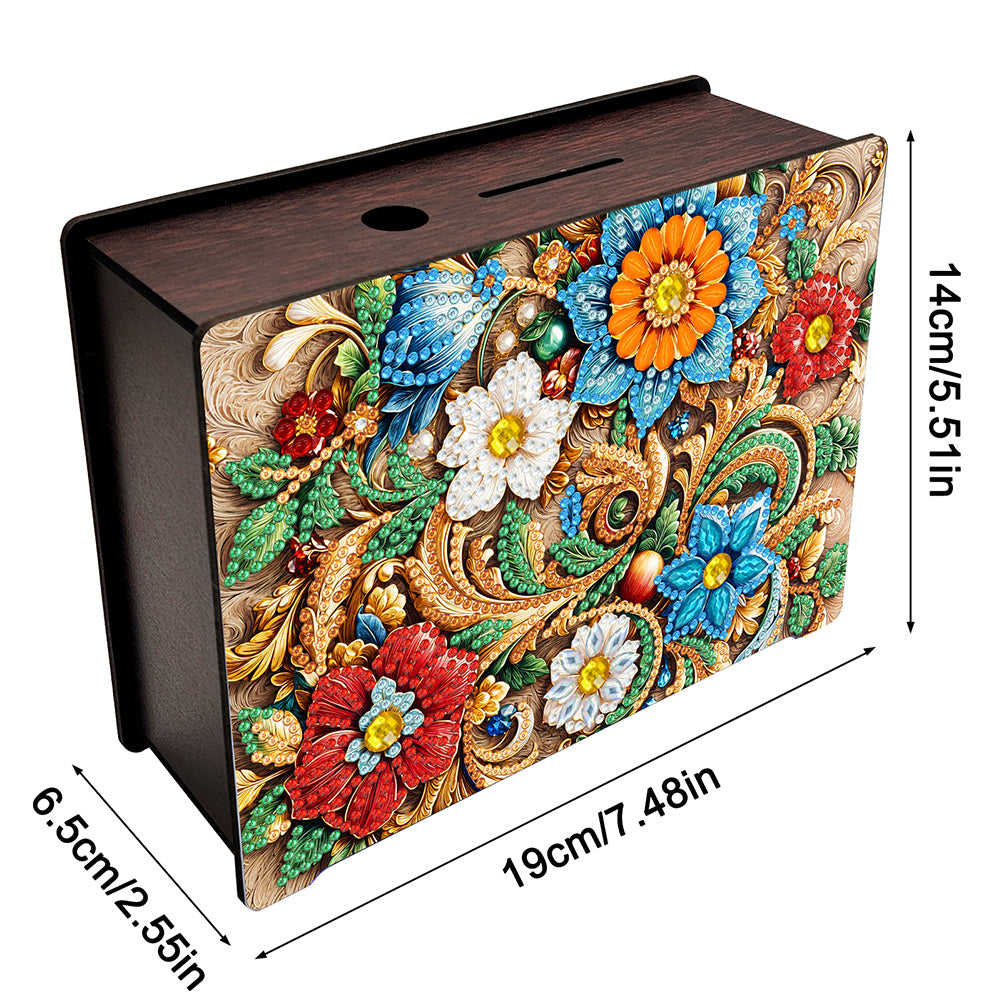 Wooden Flower Diamond Painting Money Saving Box Desktop Coin Bank for Beginners