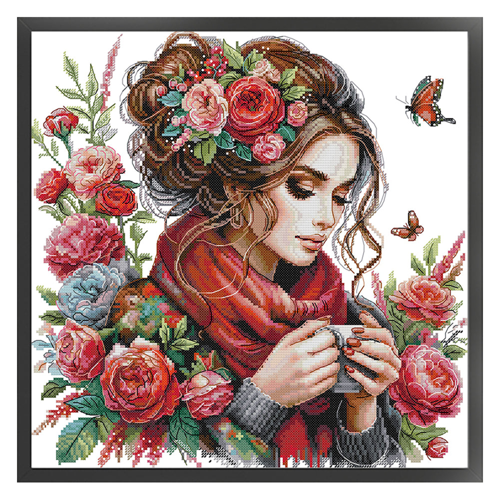 Joy Sunday - Flower-Like Girl - 51*51CM 11CT 3 Stamped Cross Stitch