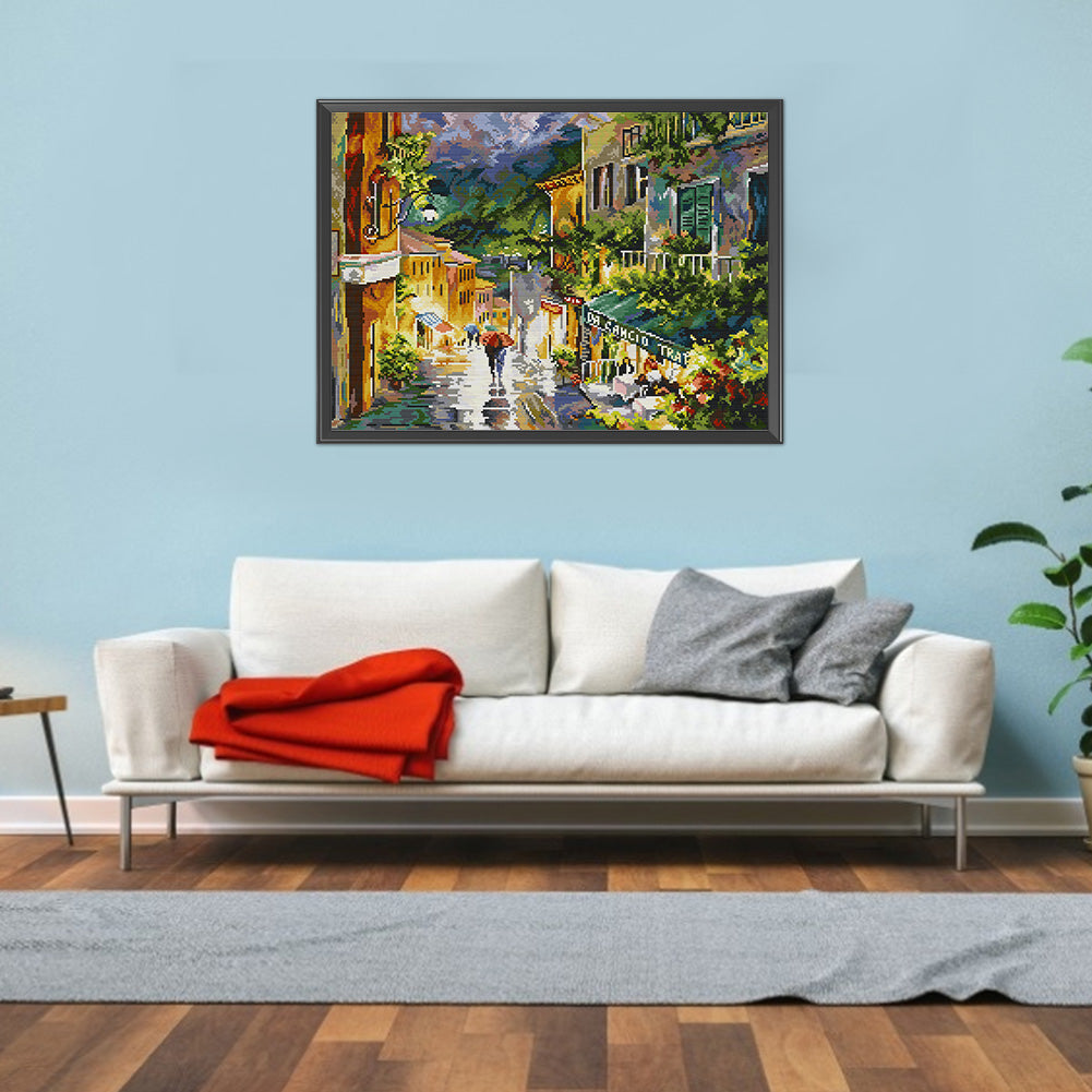 DIY Rain Street Printed Cross Stitch Full Embroidery Set Cotton Handmade Needlework Kits 14CT Stamped Printed on Canvas Artworks Home Wall Decoration Art Gifts