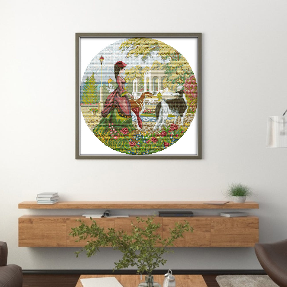 Joy Sunday - Lady And Dog - 44*44CM 14CT 2 Stamped Cross Stitch