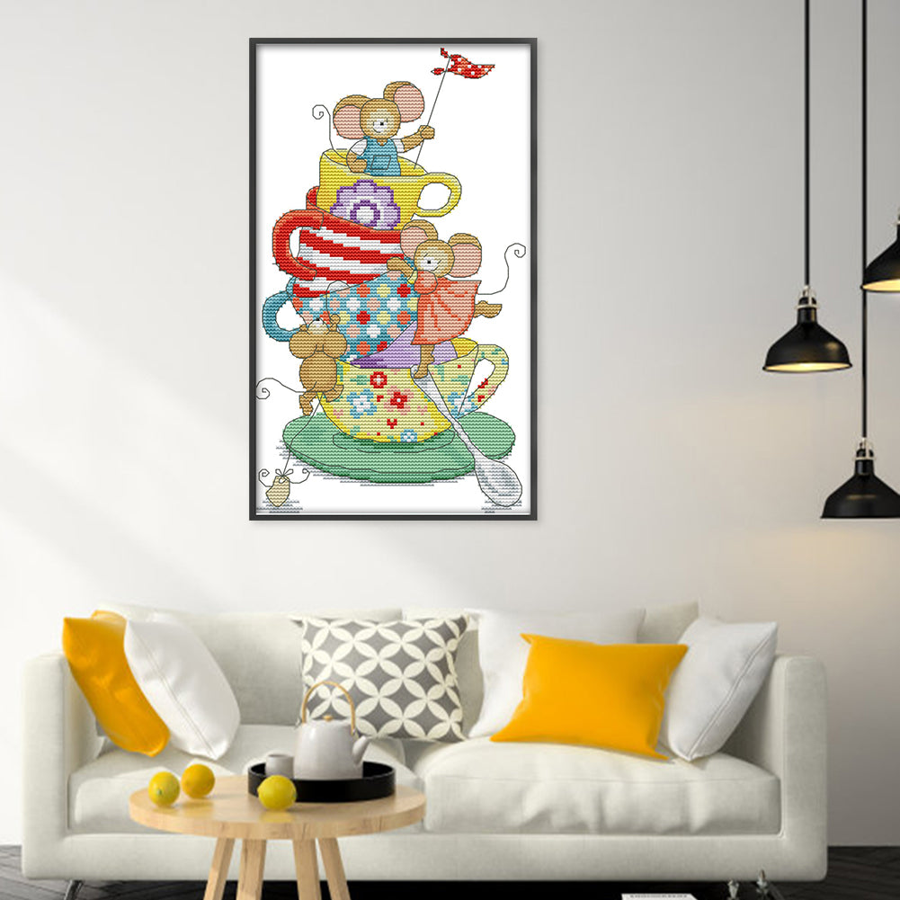 Joy Sunday - Mouse In A Cup - 20*32CM 14CT 2 Stamped Cross Stitch