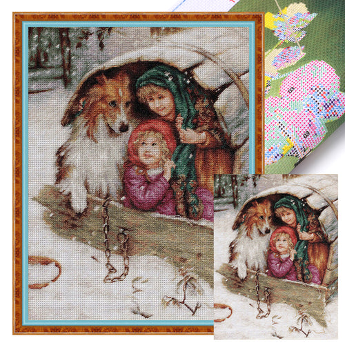 Joy Sunday - Playing With The Shepherd Dog Children - 48*61CM 14CT 2 Stamped Cross Stitch
