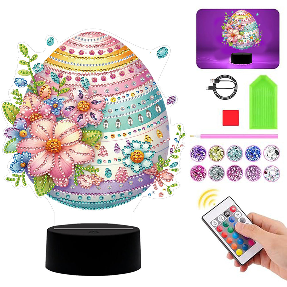 DIY Diamond Flower Egg Art Painting Lamp with Tools for Bedroom Decor Gifts Easter