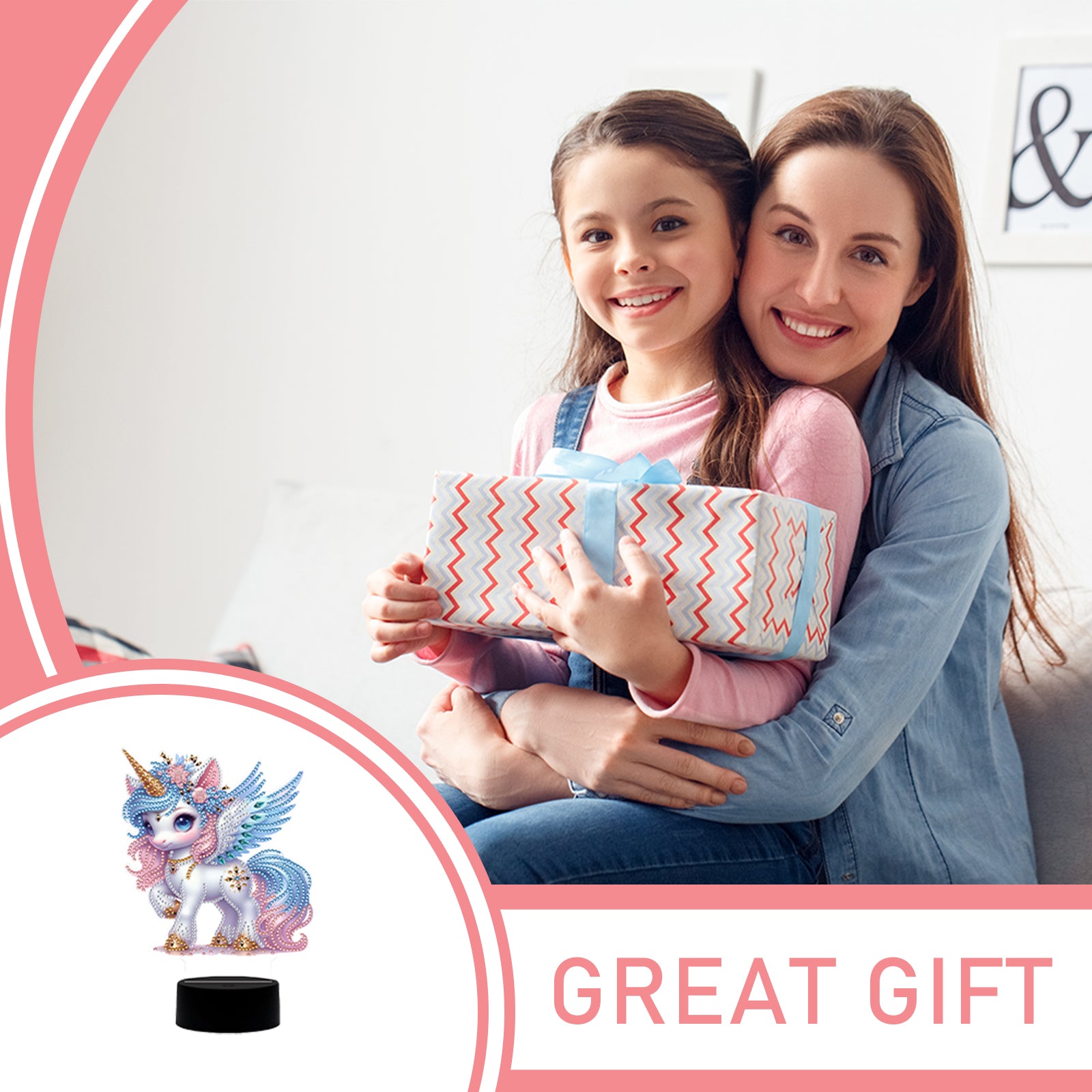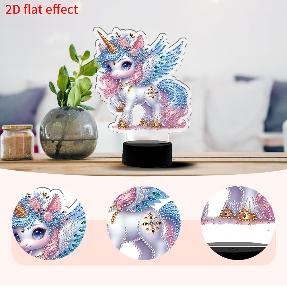 Cute Unicorn DIY Diamond Painting Table Lamp with Tools 5D DIY Diamond Painting Lamp Acrylic for Bedroom Living Room Home Office