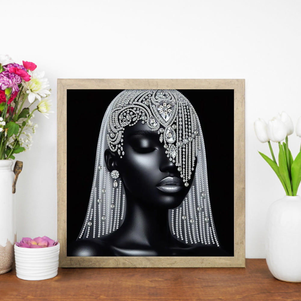 Black Pearl Lady 30*30CM(Canvas) Partial Special Shaped Drill Diamond Painting