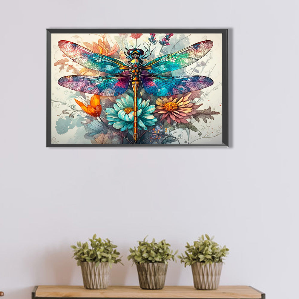 Dragonfly In A Flower Field 60*40CM(Canvas) Full Round Drill Diamond Painting
