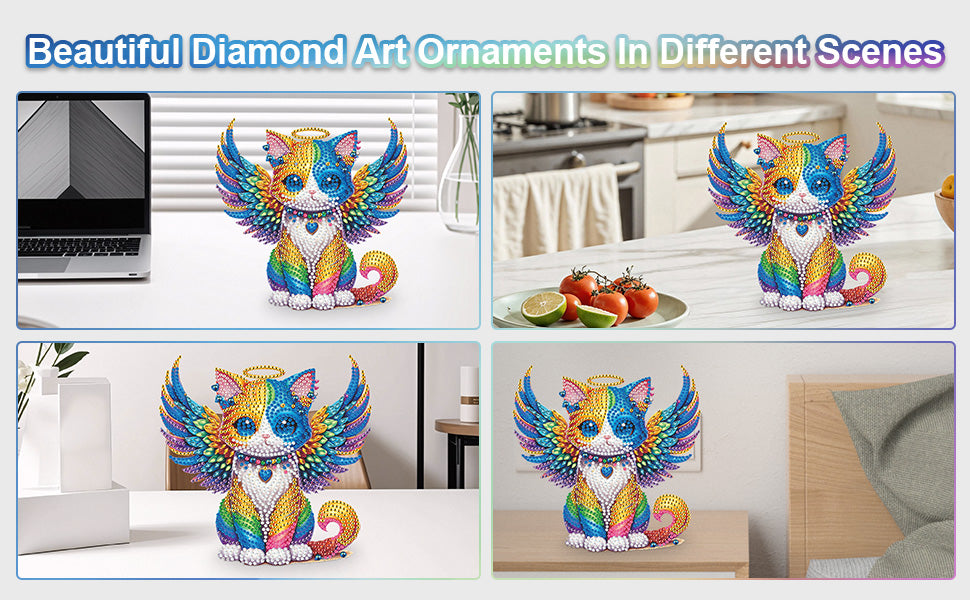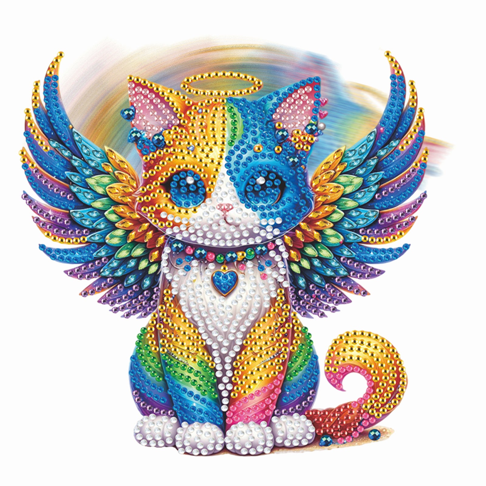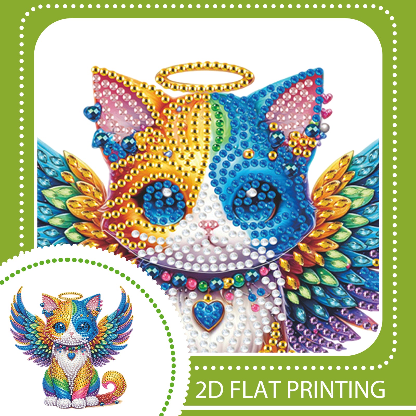 2D Flat Angel Wings Cat DIY Diamond Painting Kit Acrylic Shaking Head Ornament