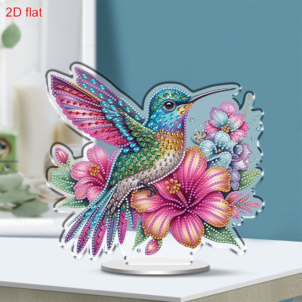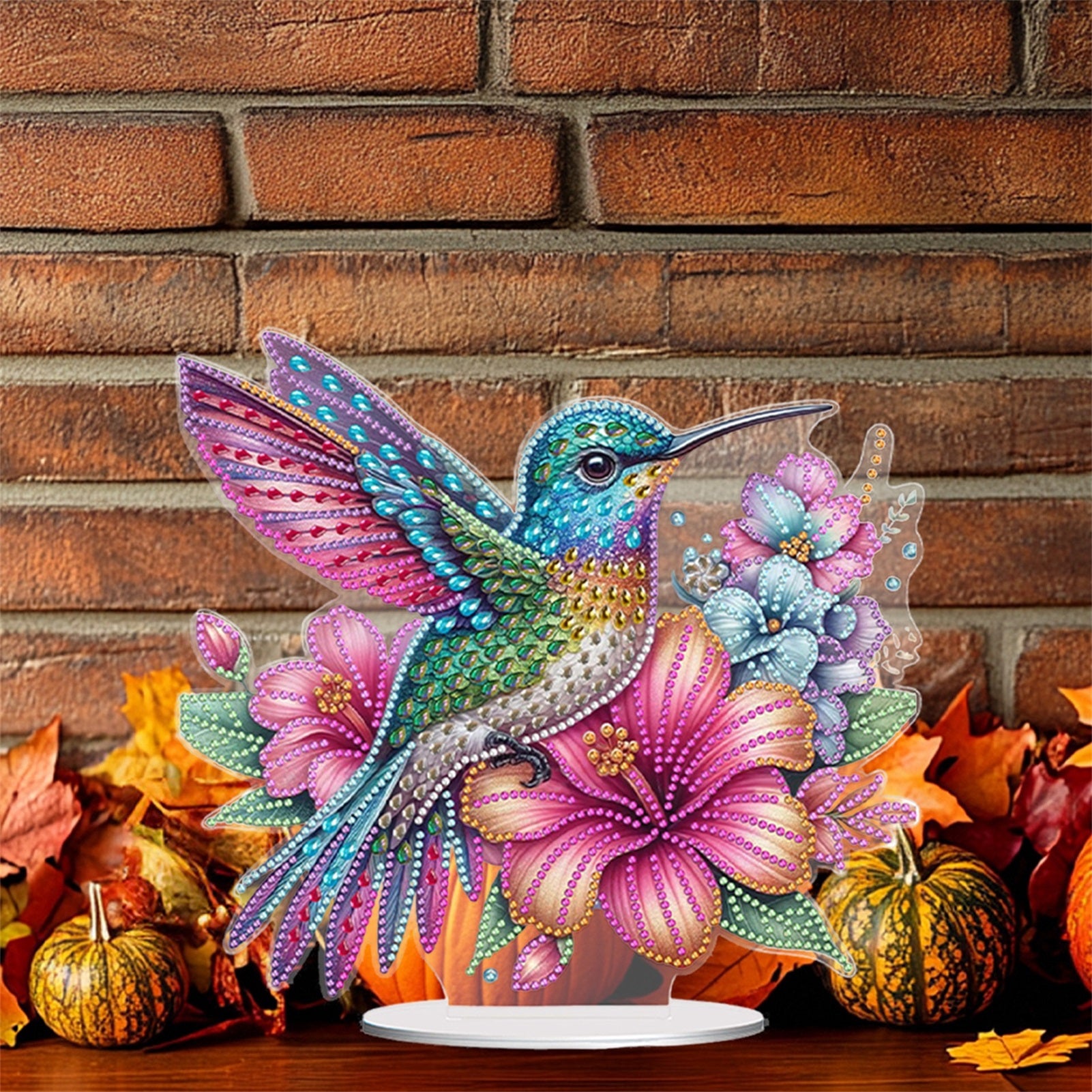Special Shape Hummingbird Diamond Painting Desktop Decorations Single-Side 5D DIY Diamond Art Tabletop Decorations Handmade Table Top Diamond Painting Ornament Kit Flower for Home Office Desktop Decor