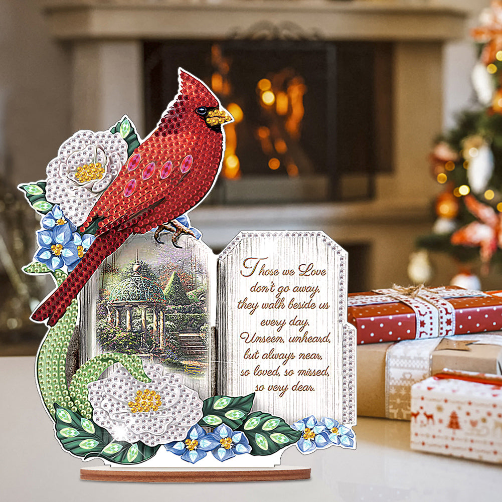 Wooden Diamond Painting Tabletop Ornaments Kit Xmas Cardinal Table Top Diamond Painting Ornament Kits Diamond Painting Desktop Ornaments Kit for Xmas Table Office Home Decor