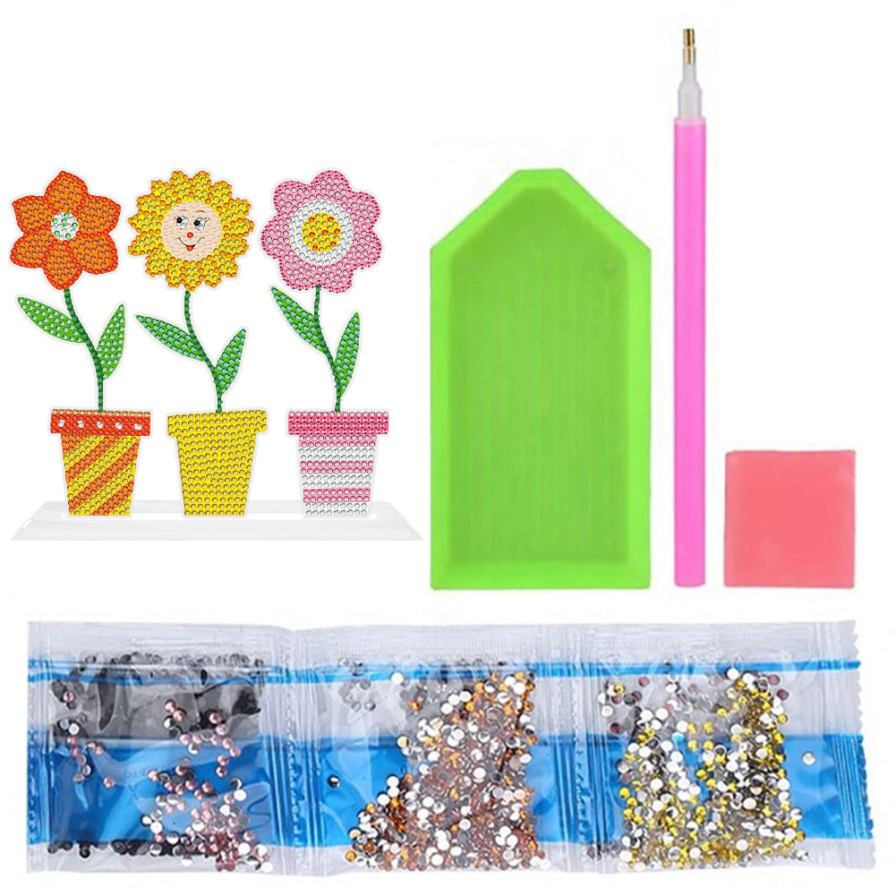 DIY Crystal Diamond Ornament Art Craft Flowers Point Drilling Ornament Kids Gift