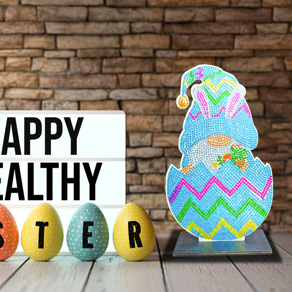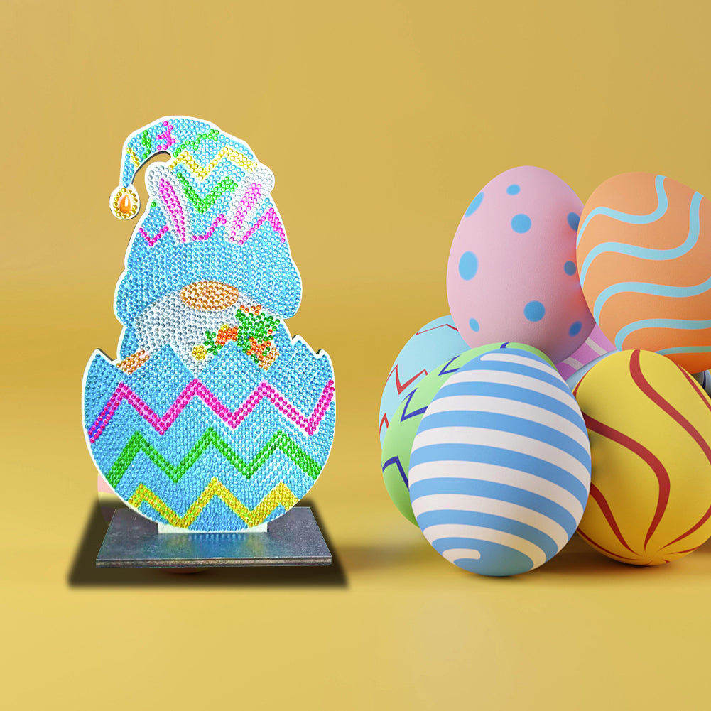 DIY Easter Desk Diamonds Mosaic Ornament Handmade Wooden Crystal Diamond Ornament Goblin Pattern Single Sided Home Decoration Kids Gift