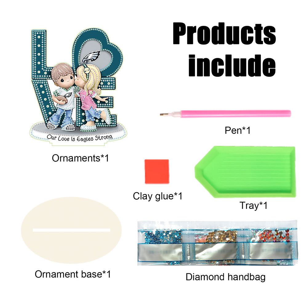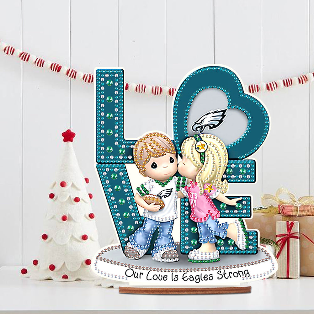 Wooden Special Shaped Love Team Logo Doll Diamond Painting Desktop Decorations 5D DIY Diamond Art Tabletop Decor for Home Office