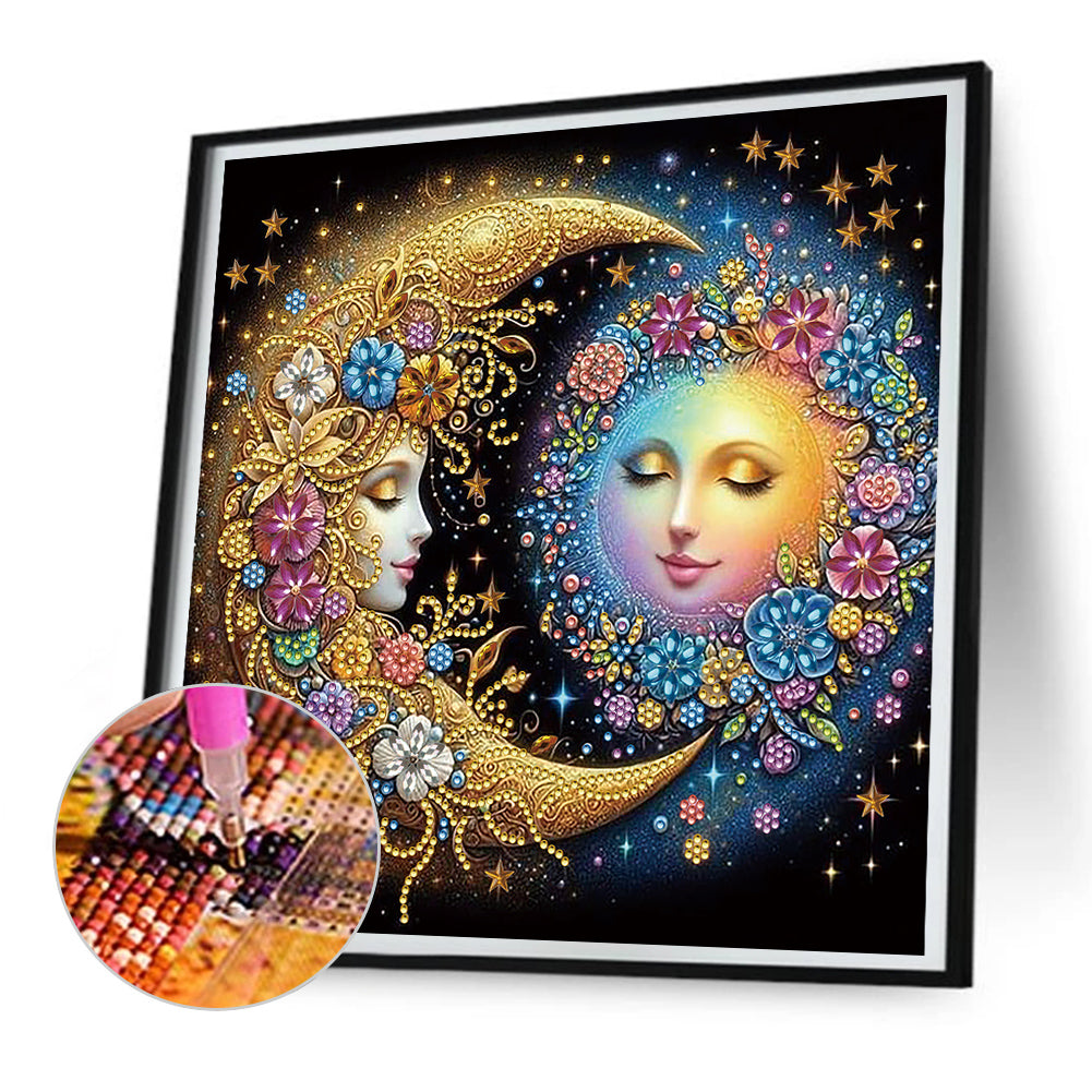 Flowers, Stars, And Moon 30*30CM(Canvas) Partial Special Shaped Drill Diamond Painting